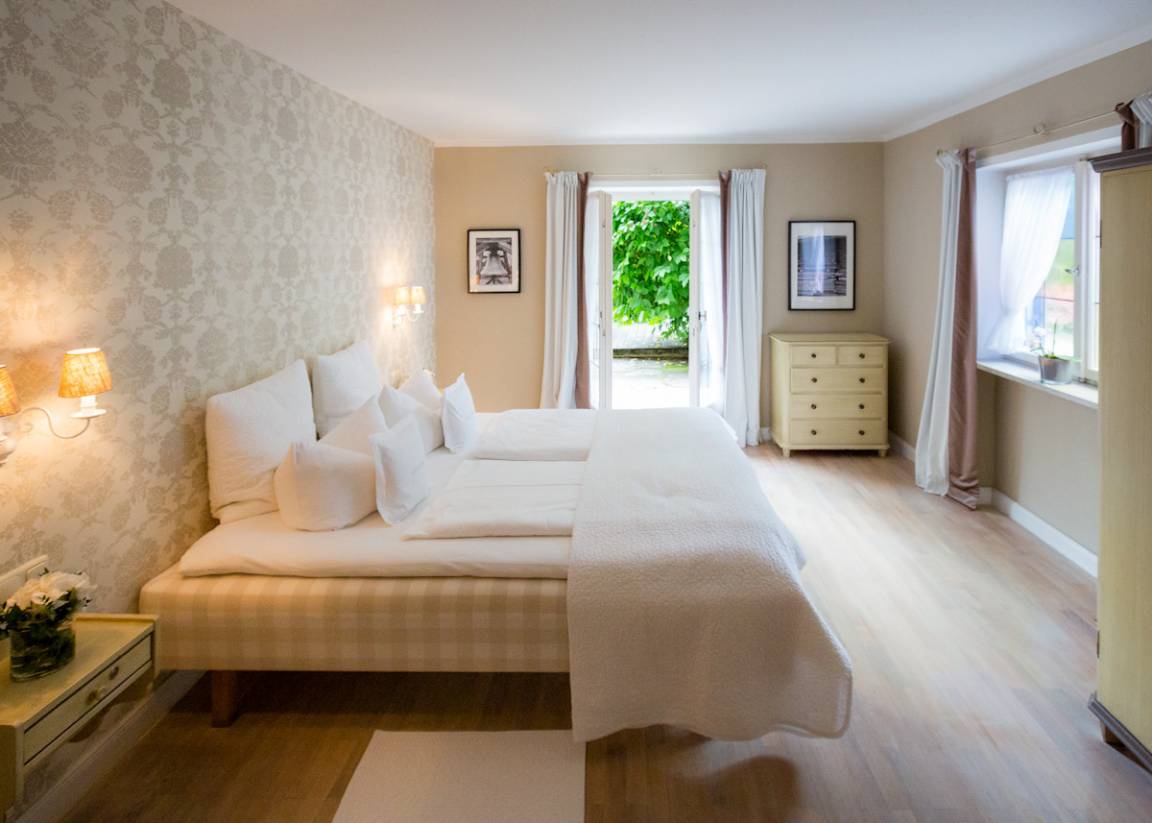 Jedes Zimmer (außer dem Standard Doppelzimmer) verfügt über einen eigenen Balkon oder eine Terrasse und die meisten Zimmer haben einen herrlichen Blick auf die beeindruckende Tegernseer Berglandschaft.