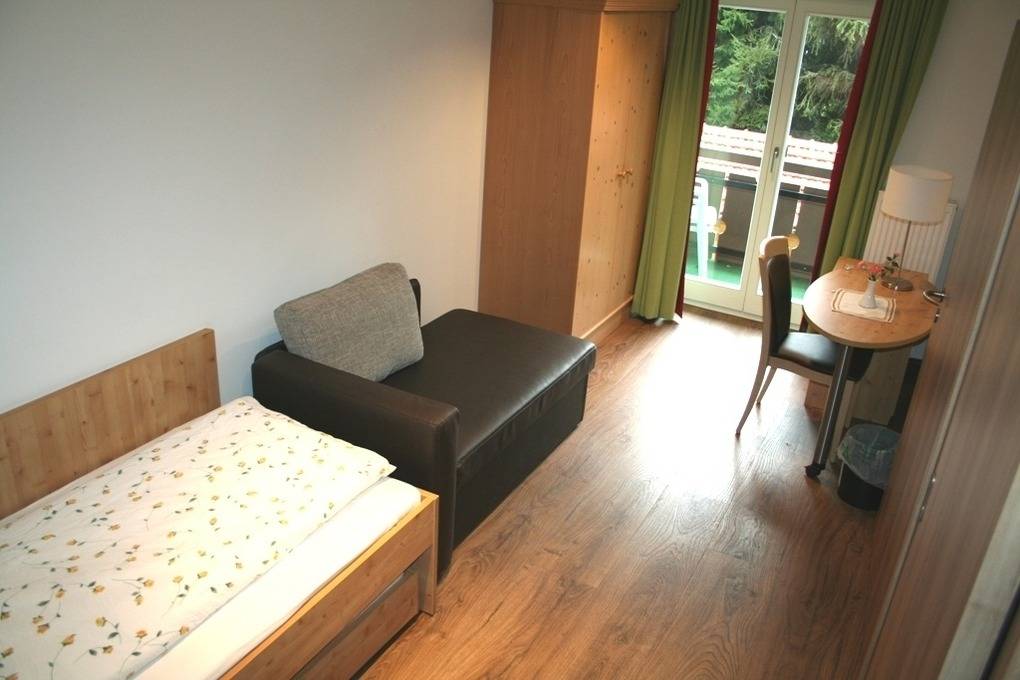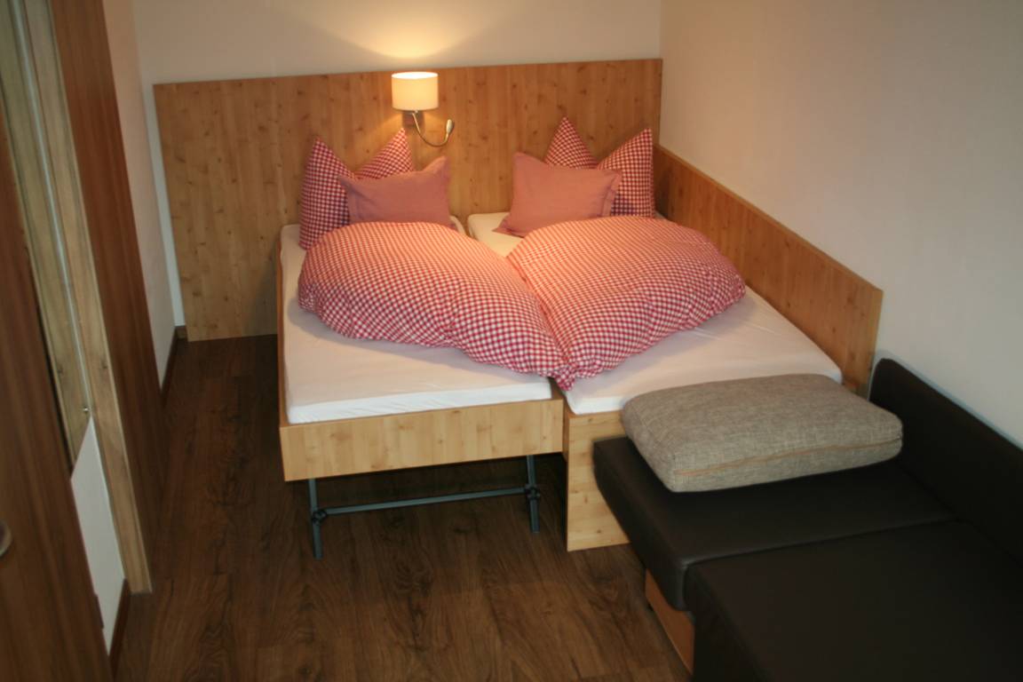 Im zweiten Schlafzimmer steht ein Einzelbett Höhe ohne Matratze 47cm, mit Matratze ca. 51cm) und verfügt über ein ausziehbares 2. Bett und eine kleine Couch (auch als 3. kleineres Bett nutzbar), so das dort 2 Personen und 1 Kind schlafen können oder eine extra gemütliche Sitzgelegenheit haben.