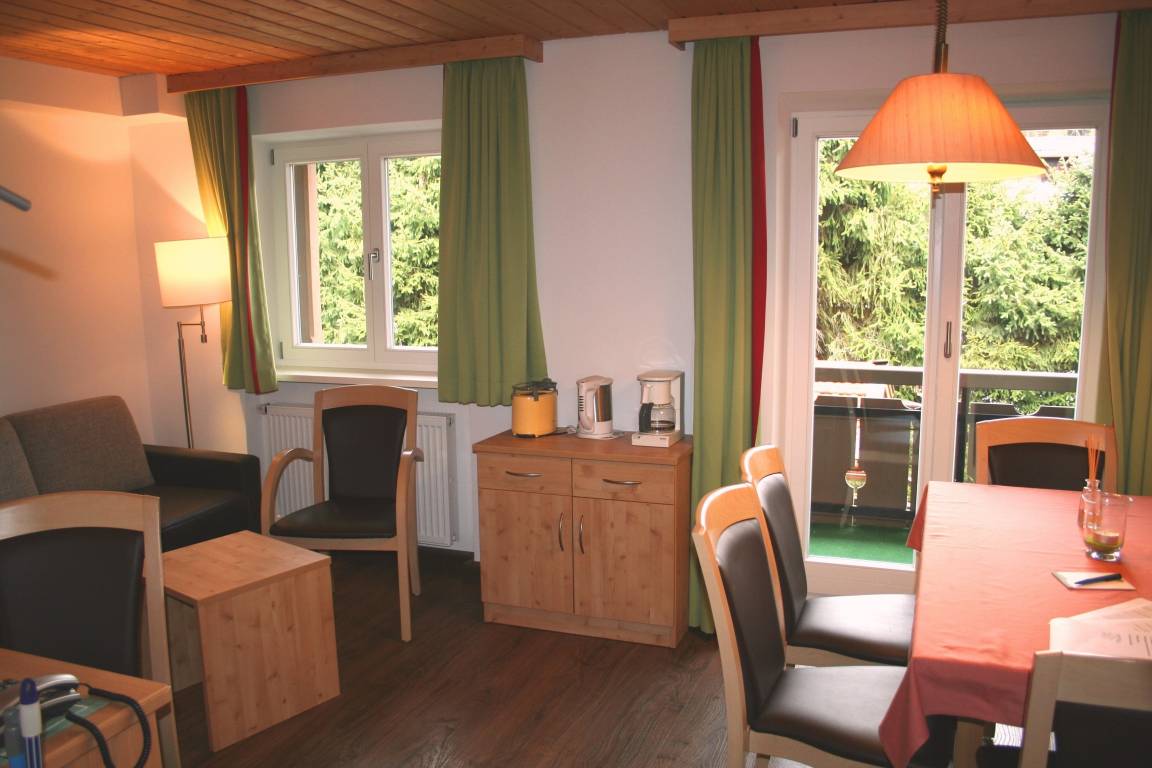 Unsere Ferienwohnung Fockenstein hat eine Größe von 55qm, liegt auf der Nord Seite im 1. oder 2. OG und verfügt über einen Balkon.