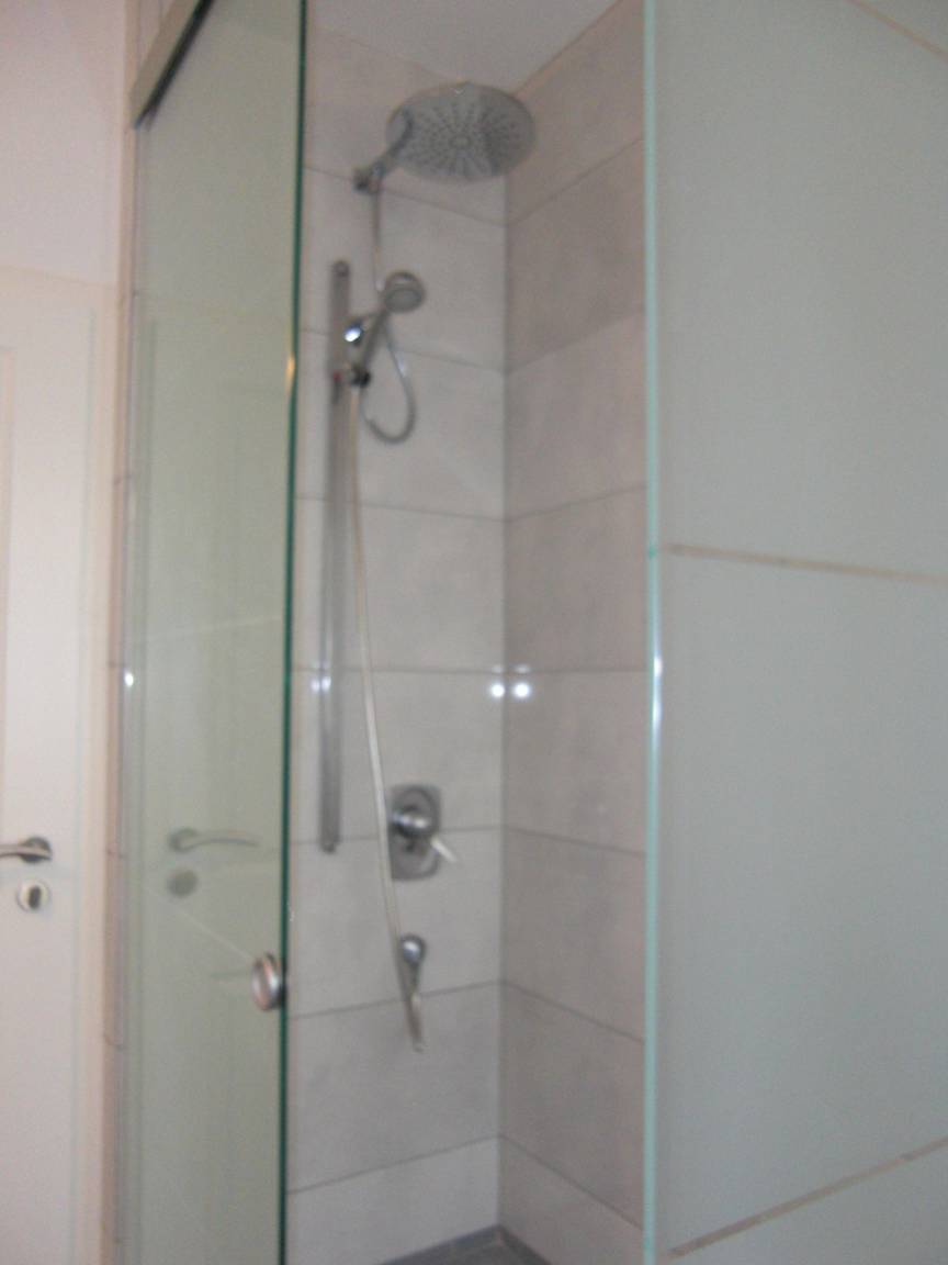 1helles Duschbad mit WC, Bidet, Handwaschbecken,
