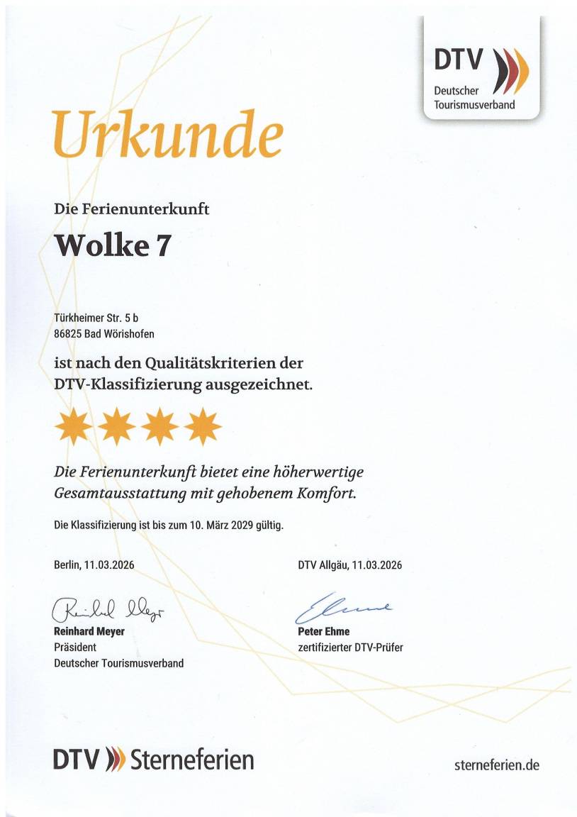 Die Ferienwohnung ist vom DTV (Deutschen Tourismusverband e.V.)