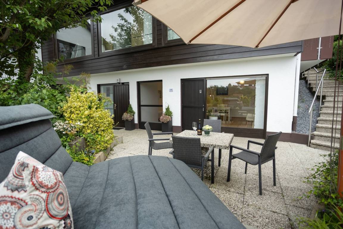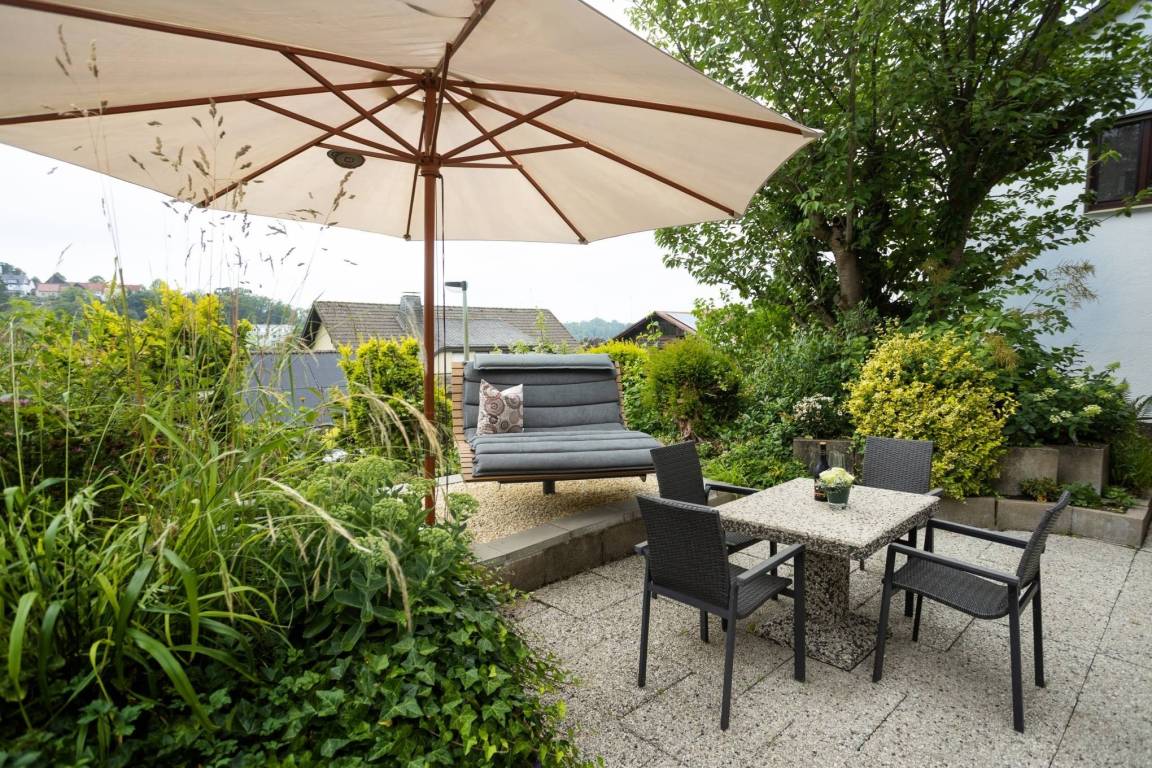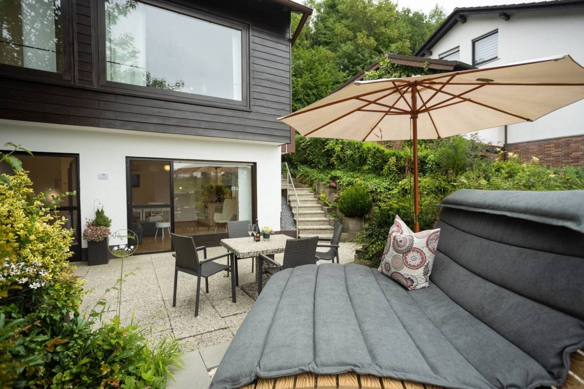 Traumhaft ruhige Ferienwohnung in Bad Wünnenbergs schönster Lage - direkt am Wald und mit großer Terrasse. Schnelles Gratis-WLAN, 2 Schlafzimmer, Smart-TV, kostenlose Parkplätze und im Winter Rodelhang vorm Haus.