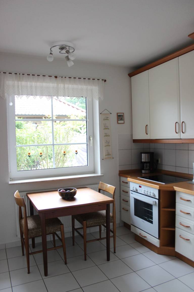 Die 87qm große, helle Ferienwohnung im Erdgeschoss eines Zweifamilienhauses, beinhaltet 2 Schlafzimmer, ein Wohnzimmer, eine gesonderte Essdiele, Küche, Badezimmer mit ebenerdiger Dusche und eingezäunten Garten mit Terrasse zur Alleinnutzung.