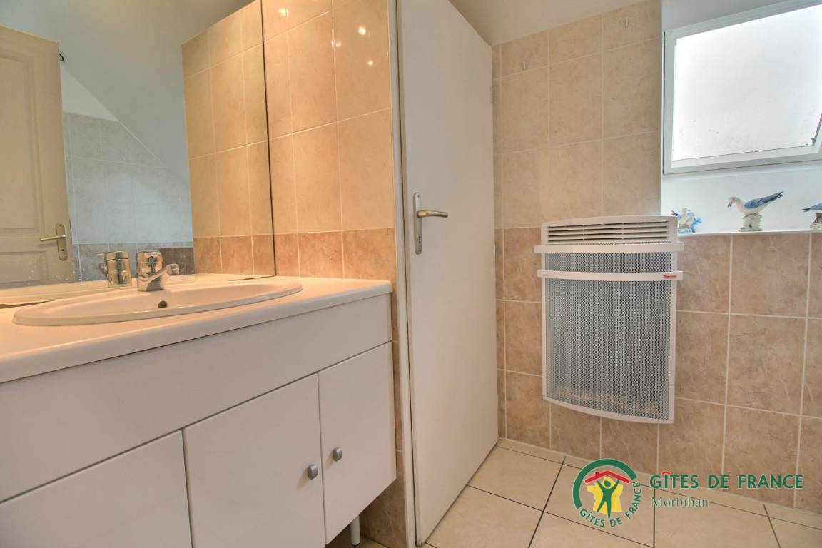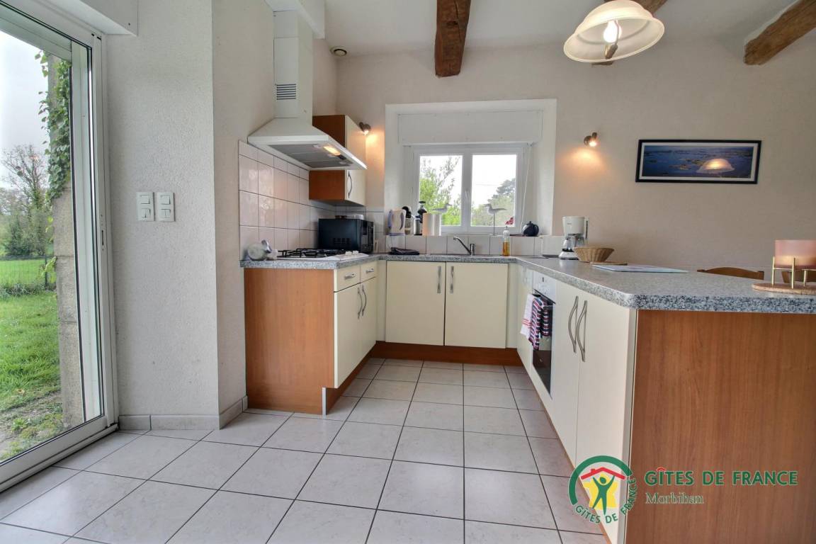 Freistehendes Ferienhaus auf einem landwirtschaftlichen Betrieb, 3 km von Baden entfernt. Wohnraum (DVD-Player)/Kochecke, 4 Schlafzimmer (2 Doppelbetten 160X200, 4 Einzelbetten, 1 Kinderbett 110X180, 1 Kinderbett), Waschraum, Badezimmer, 2 WC, Wäschetrockner, elektrische Heizung. Garten, Gartenmöbel, Grill, Fahrradschuppen. Auch für Kurzaufenthalte ab 2 Nächten. Internetanschluss. Ehemalige renovierte Scheune in einem Milchproduktionshof mitten in der Gegend des Golfe du Morbihan. Großer Wohnraum (Fensteröffnungen lassen viel Licht herein, schön helle Innenräume), sichtbares Gebälk und Mauerwerk. Wohnraum,