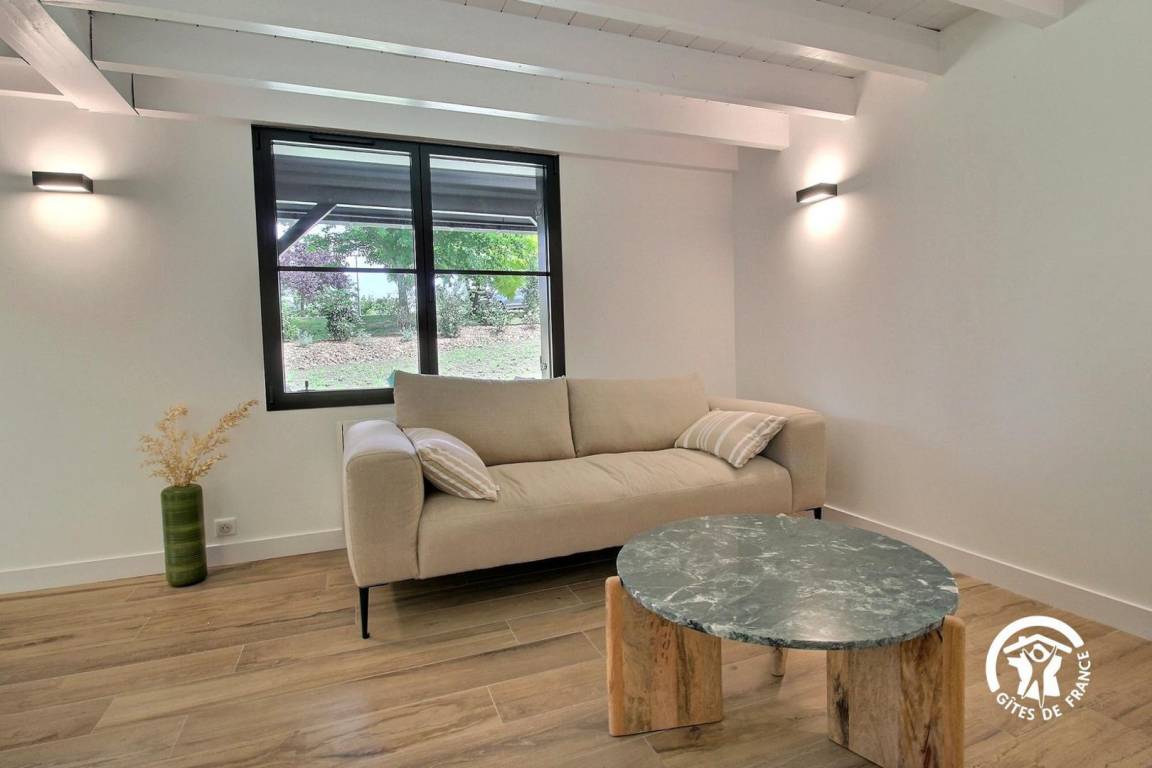 Entdecken Sie die Gîte Le Ranch, eine authentische Unterkunft, bei der an jedes Detail für Ihren Komfort gedacht ist. Die raffinierte Dekoration, die sich durch helle und neutrale Farbtöne auszeichnet, schafft eine beruhigende und ruhige Atmosphäre.