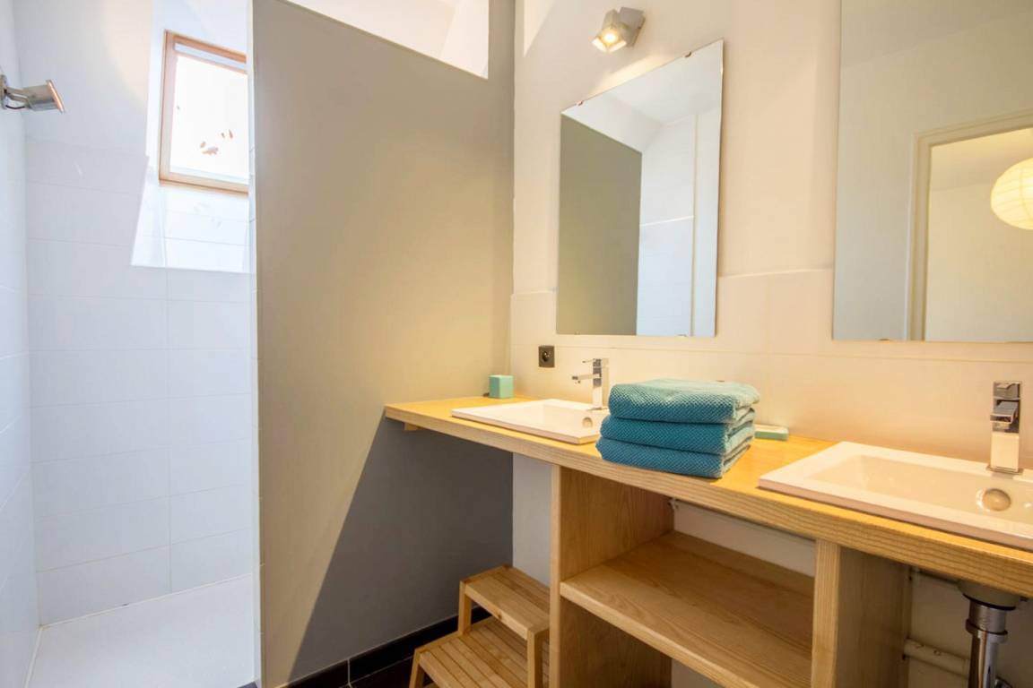 - Im Erdgeschoss: ein Wohnzimmer mit ausgestatteter Küche, Wohnzimmer und Wohnzimmer, ein Schlafzimmer (1 160 Betten), Duschbad / WC.