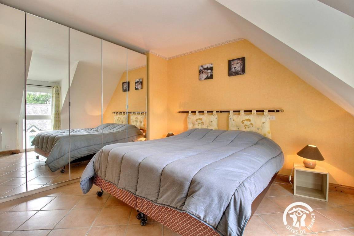 - Ein Schlafzimmer mit zwei Betten (140 x 190 cm und 160 x 200 cm)