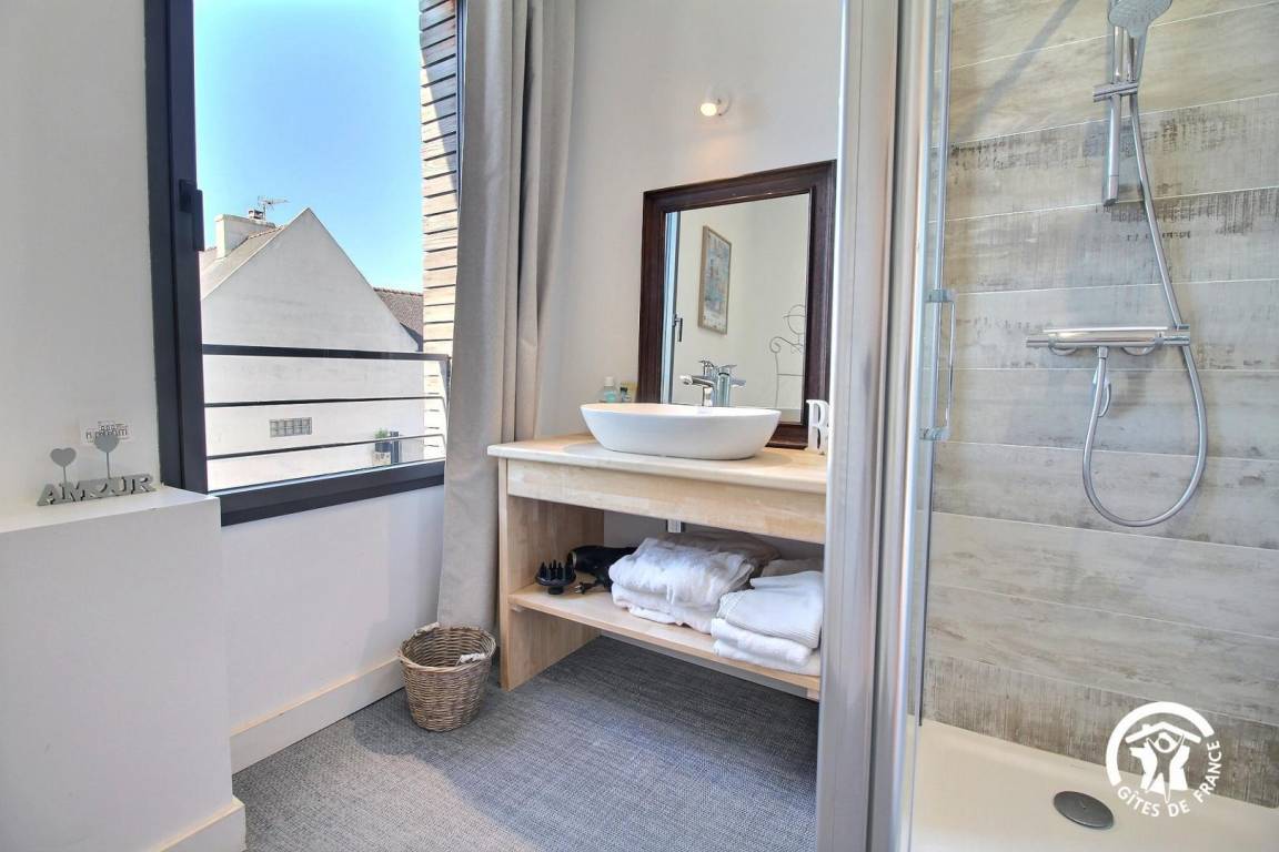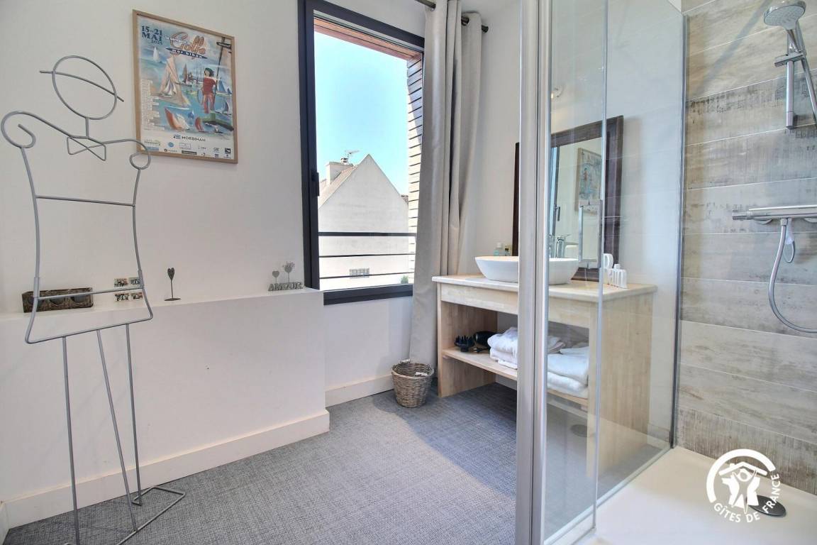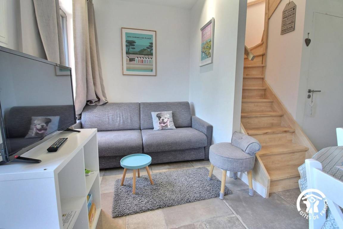 Die 55 m² große Wohnung mit gepflegter Dekoration bietet Ihnen im Erdgeschoss: einen Einbauküchenbereich mit Blick auf das Wohnzimmer und eine Lounge, ein Schlafzimmer (1 Bett 140) und ein separates WC. Im Obergeschoss, ein Schlafzimmer mit Queen-Size-Bett (160x200), ein Badezimmer. Dieses Zimmer verfügt über eine 15 m² große Terrasse mit kleinem Meerblick.