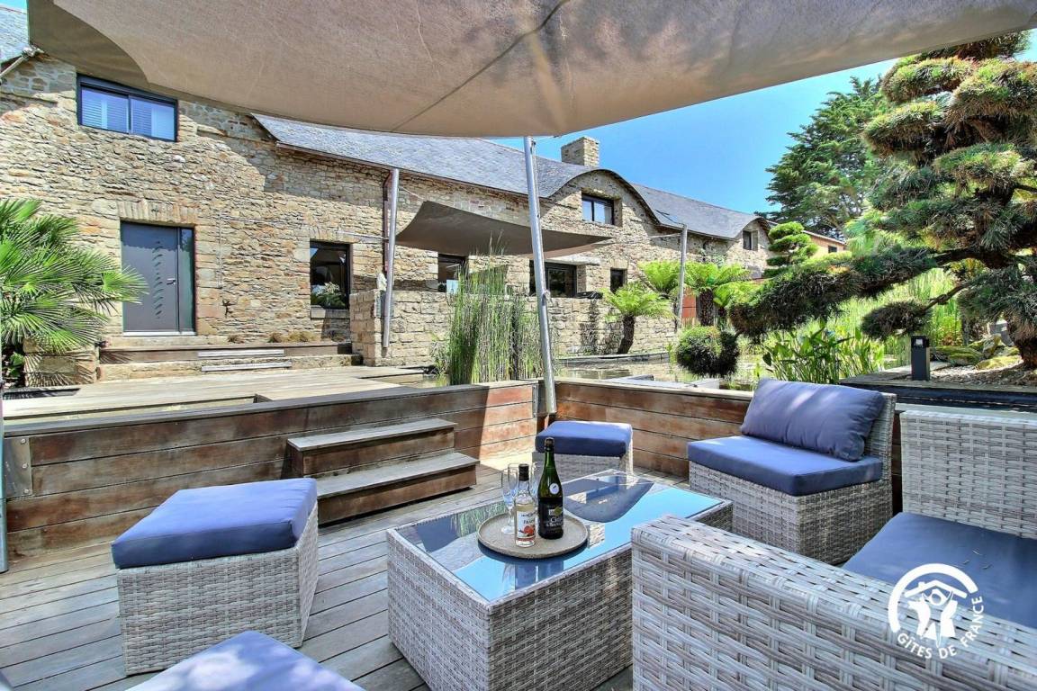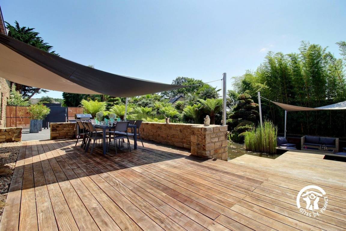 Übernachten Sie in einer grünen Umgebung auf dem Weingut Domaine Lamballe: einem der ersten in der Bretagne mit seinen 10 Hektar jungen Reben. Das Cottage „Le Grand Kerfra" ist ein prächtiges Bauernhaus, hervorragend dekoriert und perfekt ausgestattet, eine gelungene Verbindung zwischen Tradition und Moderne für einen unvergesslichen Urlaub. Hier werden Sie den beheizten Swimmingpool, die Holzterrasse und die Gartenmöbel zu schätzen wissen, die von einem herrlichen Teich umgeben und mit angelegten Beeten geschmückt sind. Der gesamte Bereich ist gesperrt. Im Herzen des Golfs von Morbihan bietet Baden verschiedene Aktivitäten: Golf, Tennis, Wandern, Reiten, Bootfahren... Genießen Sie bei Flut den Strand der 7 Inseln mit seiner Sandbank und seinem Wasser, das wärmer als der Atlantik ist! Machen Sie während Ihres Aufenthalts eine Kreuzfahrt auf dem Golf mit Zwischenstopp auf der Ile aux Moines (Pier 10 Minuten entfernt).