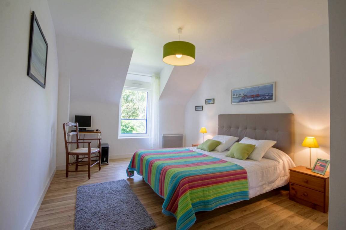 /Wohnzimmer und Zugang zu einer Terrasse in Südlage und zum eigenen kleinen Garten. Kleine Waschküche und separates WC mit Handwaschbecken. 1. Stock: 1 Zimmer (1 Bett 140), und 2 große Zimmer (2 Betten 160), Badezimmer mit Dusche und Badewanne, separates WC. Nebenkosten inklusive. Tischwäsche vorhanden. Bei der Miete von Bettwäsche sind die Betten bei Ankunft gemacht. Ferienhaus anliegend an das Ferienhaus 56G828 (gemeinsam: Hof und großer Garten). Das Ferienhaus grenzt auch an eine weitere, kaum belegte Ferienunterkunft an. Ferienhaus an der Straße nach Larmor-Baden.