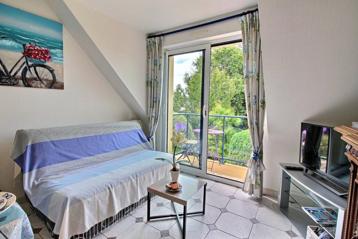 Vom Wohnzimmer aus öffnet sich ein französisches Fenster auf den Südbalkon mit Blick auf einen angelegten Garten mit Blumen zu jeder Jahreszeit. Sie werden die Stille zu schätzen wissen, während Sie Ihre Mahlzeiten in der Sonne einnehmen. Ein kleiner Ruhebereich ist mit Liegestühlen, Gartenmöbeln und Grill für Sie reserviert. Private Parkplätze entlang des Grundstücks. Gemeinsamer Fahrradunterstand. Auf derselben Ebene: Ferienhaus 56G846 & 56G848 (für 2 bis 3 Personen), mit gemeinsamem Eingang.