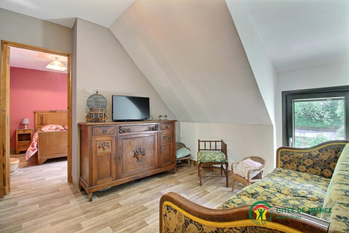 - Obergeschoss: ein Mezzanine, das in ein kleines Wohnzimmer umgewandelt wurde, ein Schlafzimmer für 4 Personen (1 Bett 140 x 190 und 1 Bett 160 x 190 verstellbar auf 2 x 80), zwei Doppelzimmer (2 Betten 140 x 190), ein Badezimmer und ein separates Toilette.