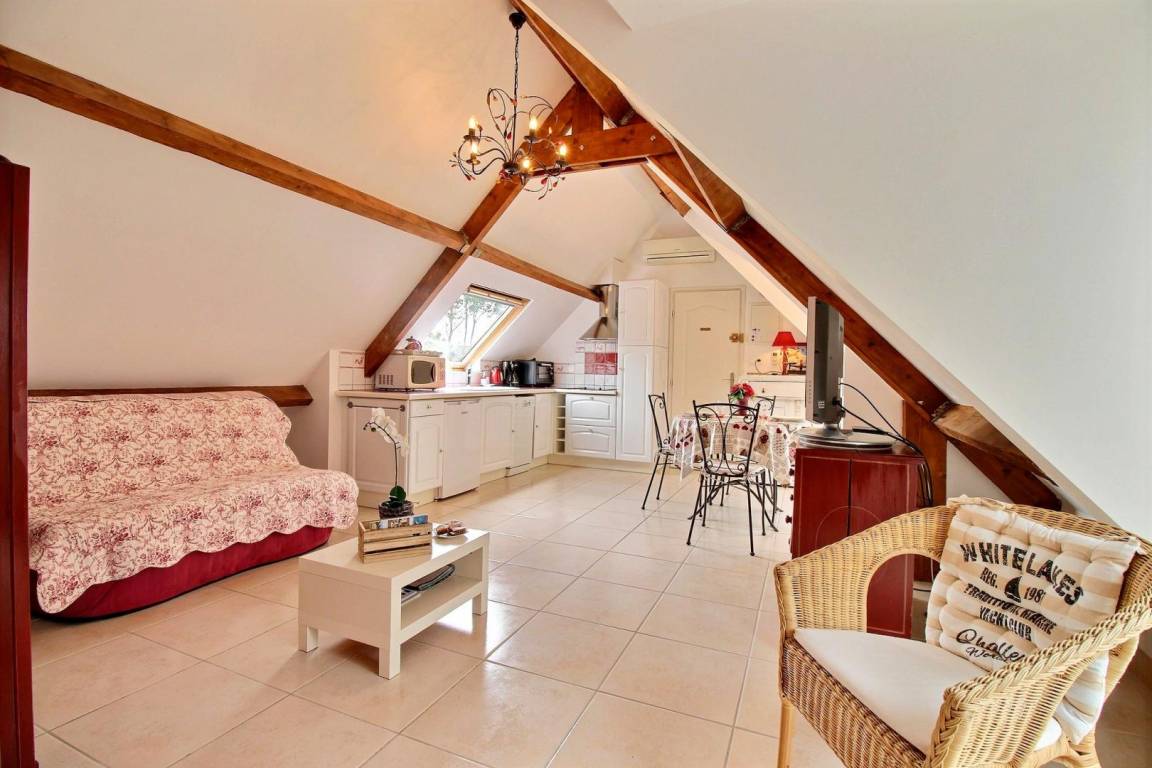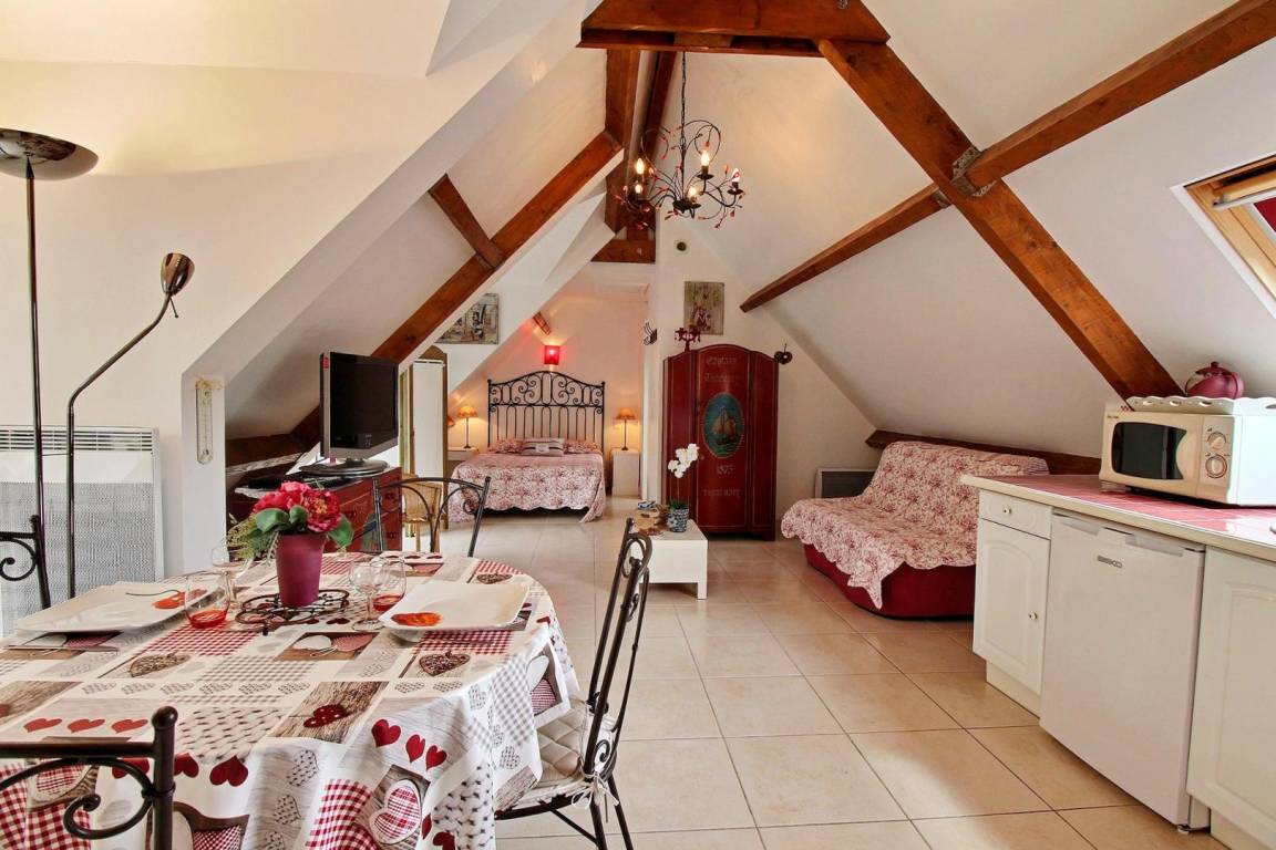 Diese Ferienwohnung ist ein großes Studio mit individuell regulierbarer Klimaanlage und befindet sich in einer ruhigen Gegend abseits der Straße. Es befindet sich im 1. Stock auf der gleichen Ebene. Sehr hübsch und hübsch eingerichtet, Sie werden den Charme der sichtbaren Balken hier zu schätzen wissen. Es bietet Ihnen ein schönes und großes Wohnzimmer mit Einbauküche, Wohnzimmer und Lounge (mit einem 140-cm-Schlafsofa), einen Schlafbereich (1 140-cm-Bett) und ein Duschbad mit WC. Ein kleiner Ruhebereich im Garten ist mit Liegestühlen, Gartenmöbeln und Grill für Sie reserviert.