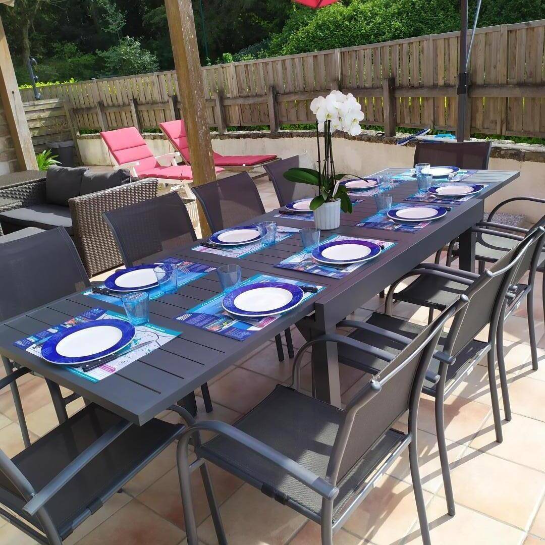 „SEJOUR AGREABLE PROPRIETAIRES SYMPATHIQUES ET ARRANGEANTS UN PETIT BEMOL POUR LA DOUCHE DE LA SUITE PARENTALE QUI N EST PAS PRATIQUE DU TOUT.PISCINE SUPERBE ET TOUJOURS A BONNE TEMPERATURE.“