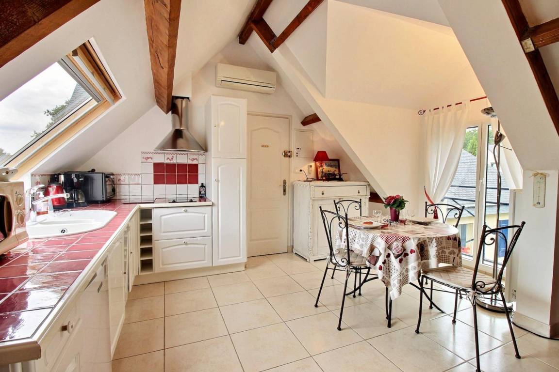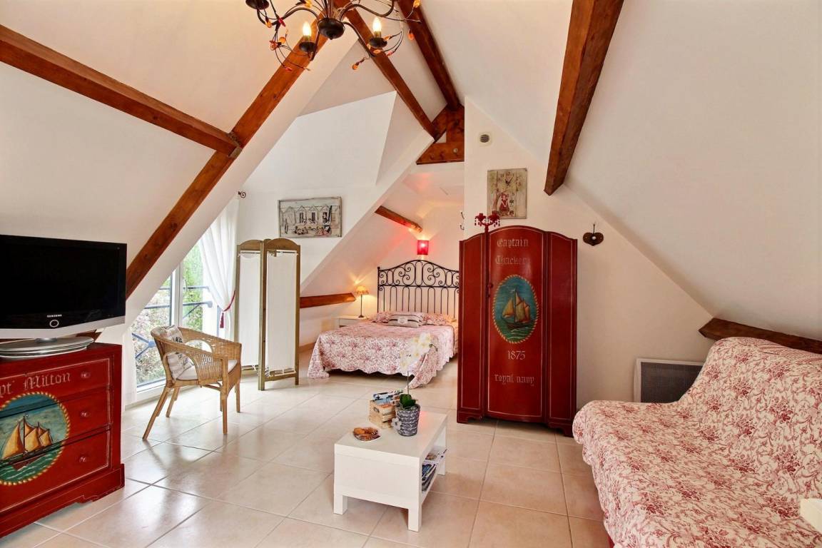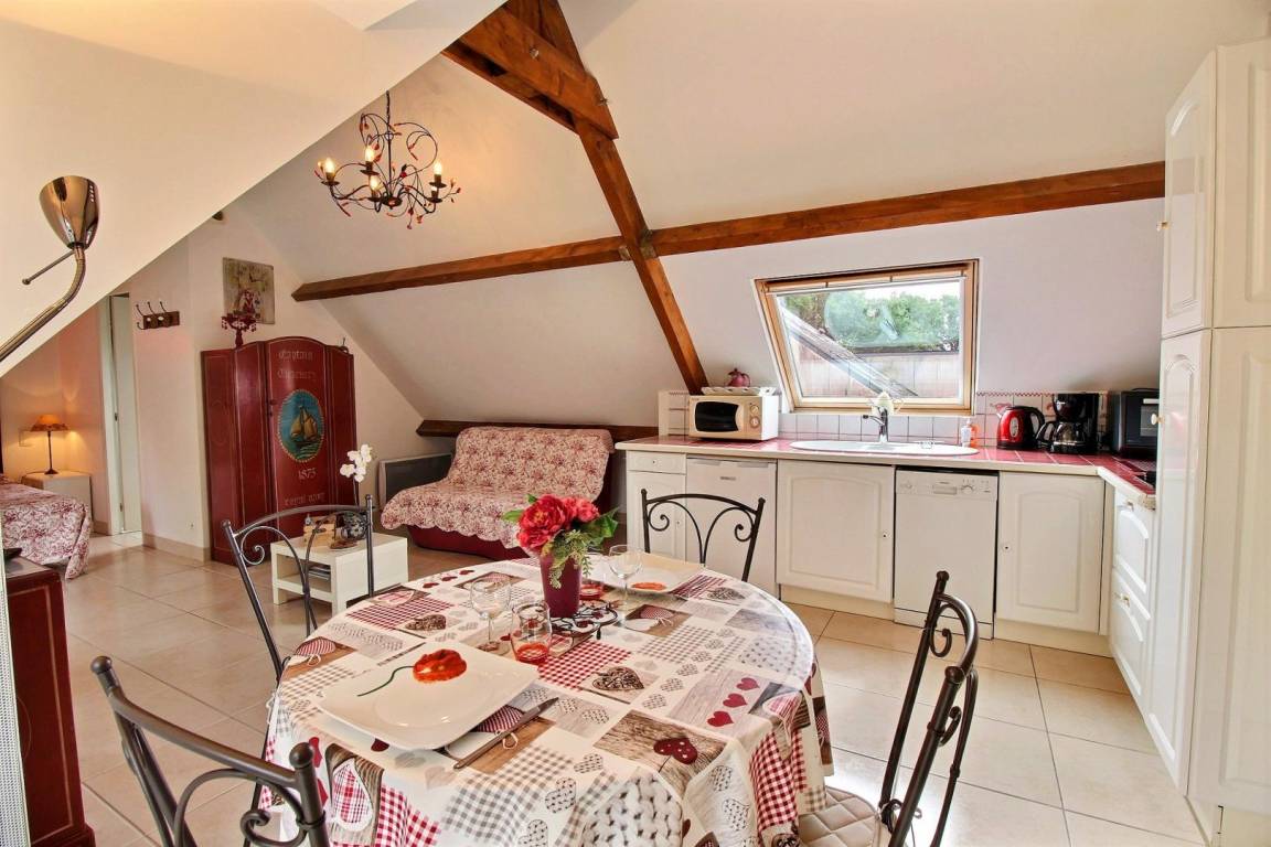 Dieses große Studio mit individuell regulierbarer Klimaanlage, ruhig und abseits der Straße gelegen, befindet sich im 1. Stock mit separatem Eingang auf derselben Ebene. Sehr hübsch und hübsch eingerichtet, Sie werden den Charme der sichtbaren Balken hier zu schätzen wissen. Es bietet Ihnen ein schönes und großes Wohnzimmer mit Einbauküche, Wohnzimmer und Lounge, einen Schlafbereich (1 Bett 140) und ein Duschbad mit WC. Ein kleiner Ruhebereich im Garten ist mit Liegestühlen, Gartenmöbeln und Grill für Sie reserviert.
