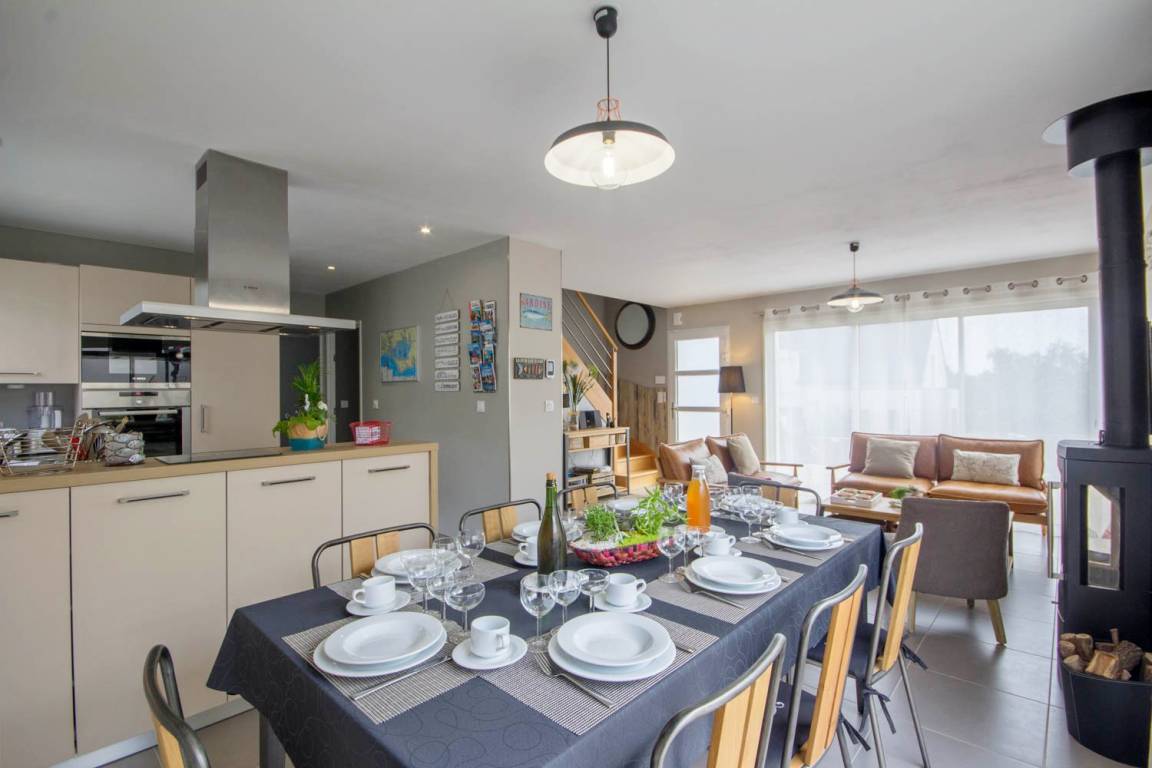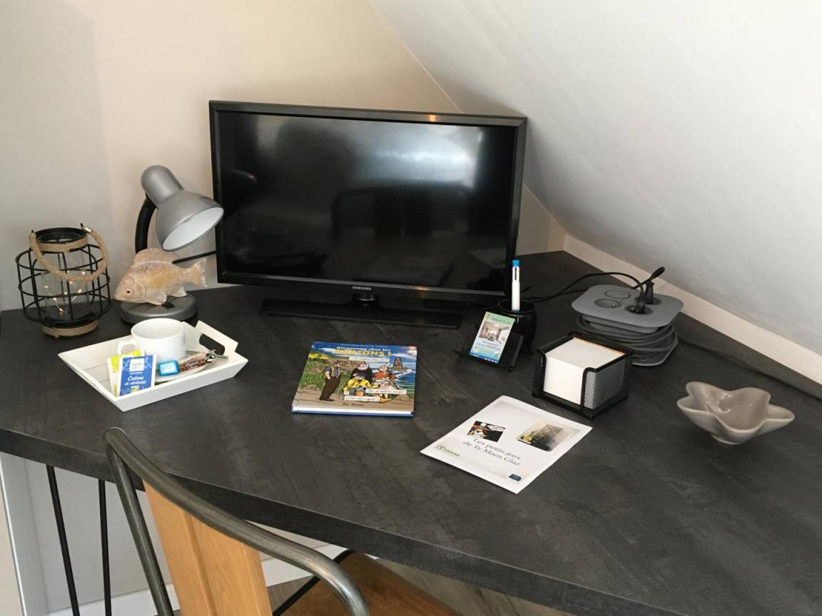 „Très jolie maison, équipement très complet, confort extrême avec tous les équipements possibles (vaisselle, batterie de cuisine bien suffisante pour 8 personnes, robots, bouilloire électrique, 2 cafetières (Nespresso et filtre) etc...Matériel de cuisine de belle qualité. Nombreux guides de la région et des balades, et nombreux jeux de société en cas de mauvais temps. Chambres très pratiques (rangements++, literie confortable).2 salles de bain bien équipées, avec 2 sèches cheveux, linge de toilette en nombre et serviettes pour le SPA fournies. Accueil très chaleureux des propriétaires avec de nombreuses petites attentions (3 bouteilles de cidre et jus de pommes, caramels au beurre salé, far breton fait par la propriétaire) et explications concises et précises concernant le fonctionnement des appareils et du SPA. Possibilité de charge de voiture électrique, parking 2 voitures (1 a l'intérieur, l'autre juste derrière le portail sur la montée goudronnée.“
