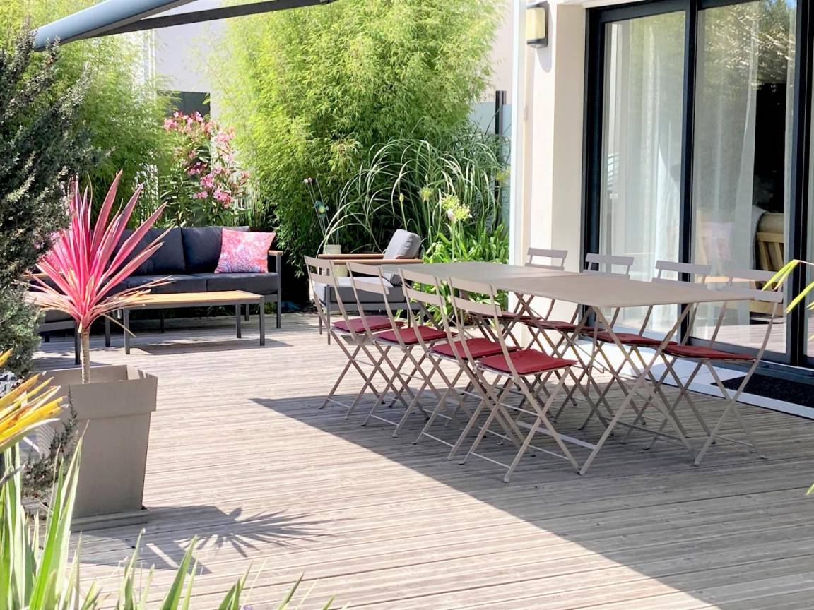 „Sehr geräumige und besonders komfortabel ausgestattete Unterkunft. Ruhig gelegen mit schönem Garten und großer Terrassen. Sehr nette Gastgeber. Sehr herzlicher Empfang. Einfach perfekt.“