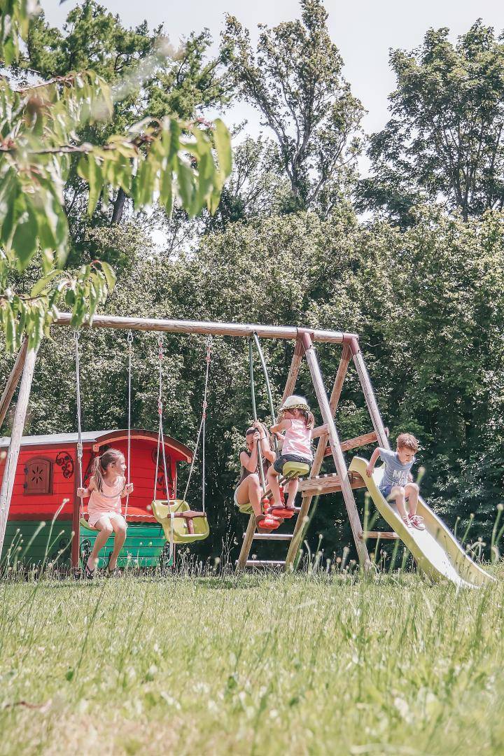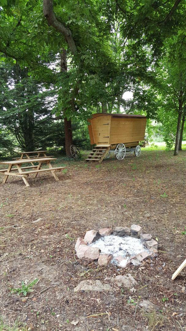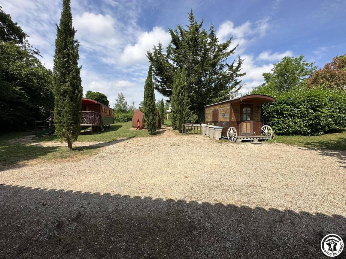 „Nous avons passé un long weekend très agréable. Le cadre est calme et reposant. L accueil est aux petits soins. Les roulottes et le château sont charmants. La piscine est sécurisée. Parfait pour les familles !“