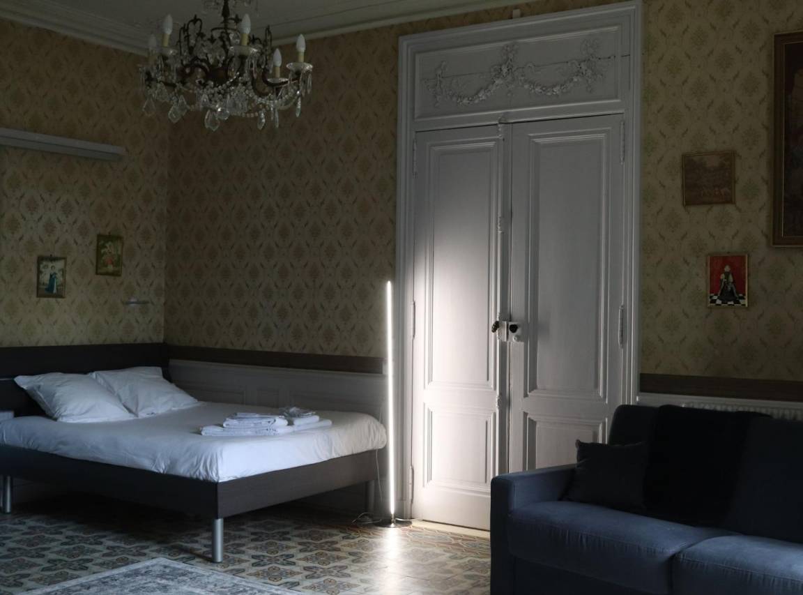 „Nous avons passé le weekend de l'ascension avec un groupe de 12 personnes. Nous étions repartis entre les 2 chambres du château situées au rez-de-chaussée, et les 2 roulottes. Nous avons pris les repas en commun au château. Les propriétaires qui habitent également dans le château mais de façon indépendante, se sont montrés particulièrement accueillant et acomoodants. Les chambres étaient très propres. Et nous avons particulièrement apprécié le cadre avec un beau parc, de l'espace et du calme. En bref, un super séjour. On recommande sans réserve.“