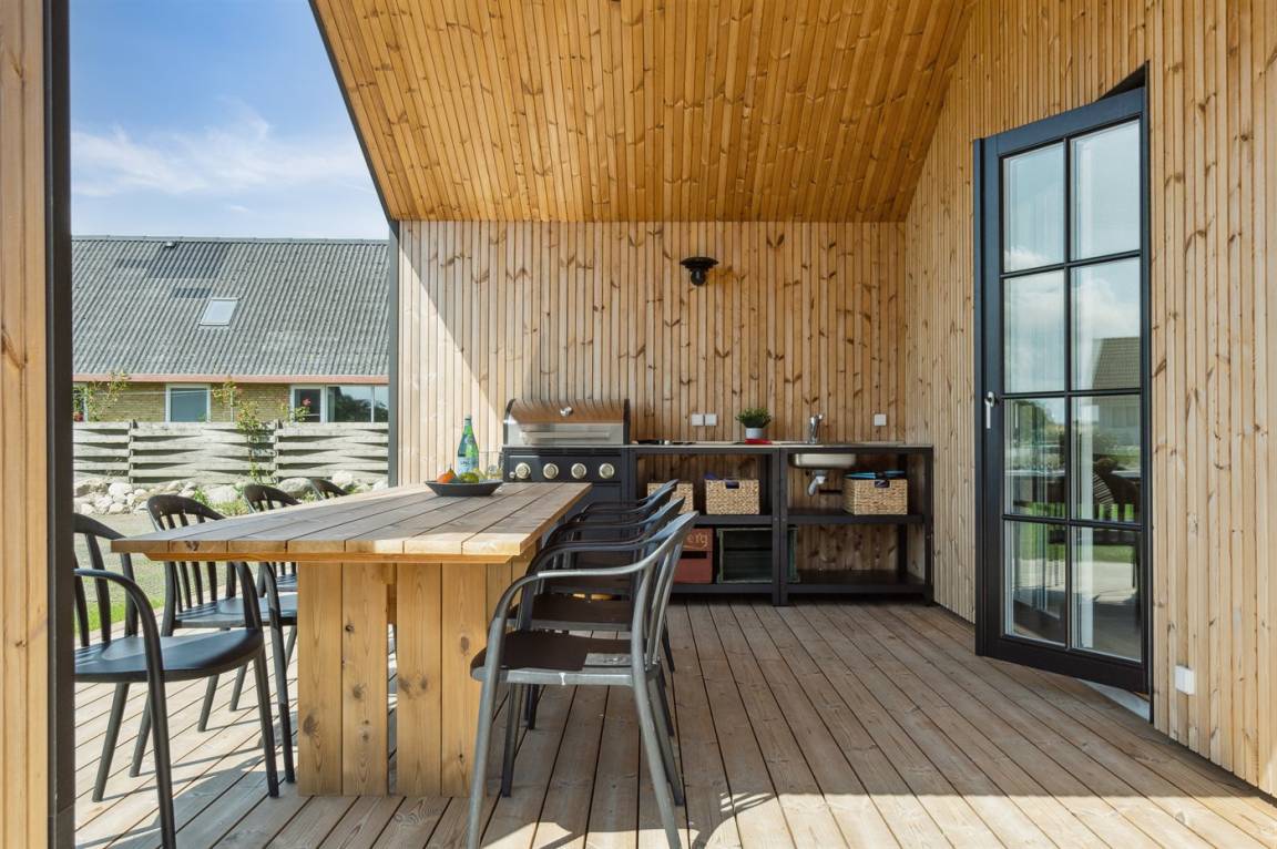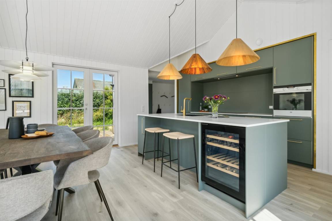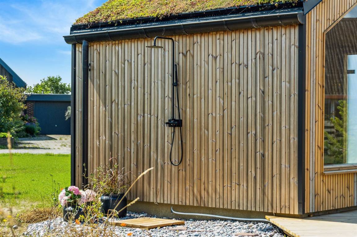 DraußenDie Ferienunterkunft liegt auf einem 1038 m² großen Gartengrundstück. Die Entfernung zum Meer beträgt 150 m. Die nächste Einkaufsmöglichkeit liegt 275 m entfernt. Es steht ein offenes Terrassenareal zur Verfügung. Außerdem gibt es überdachte Terrasse. Trampolin. Die Entfernung zu einem Spielplatz beträgt 500 m. Außensauna. Außendusche. Es beteht die Möglichkeit das Essen in der Außenküche zuzubereiten. Es steht ein Grill zur Verfügung. Es ist ein Ladestecker für Elektroautos installiert. Parkplatz auf dem Grundstück.