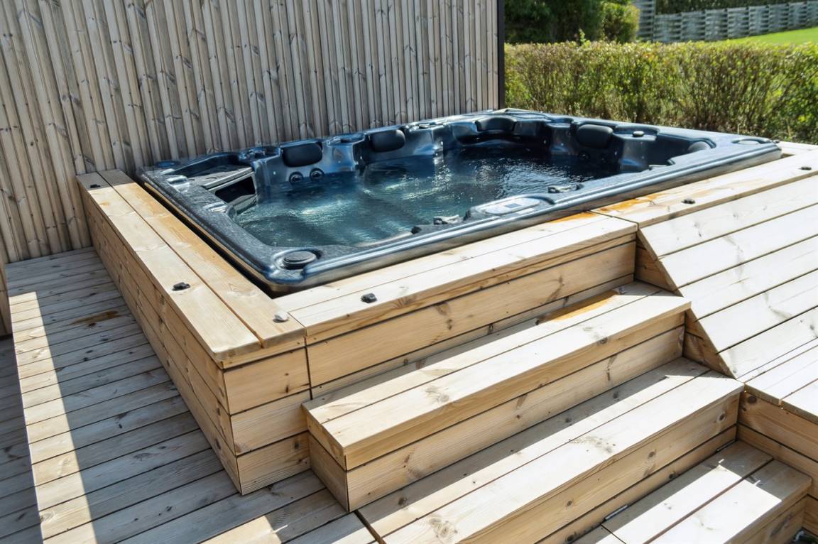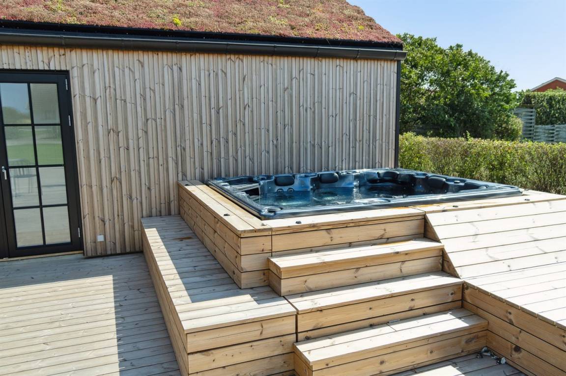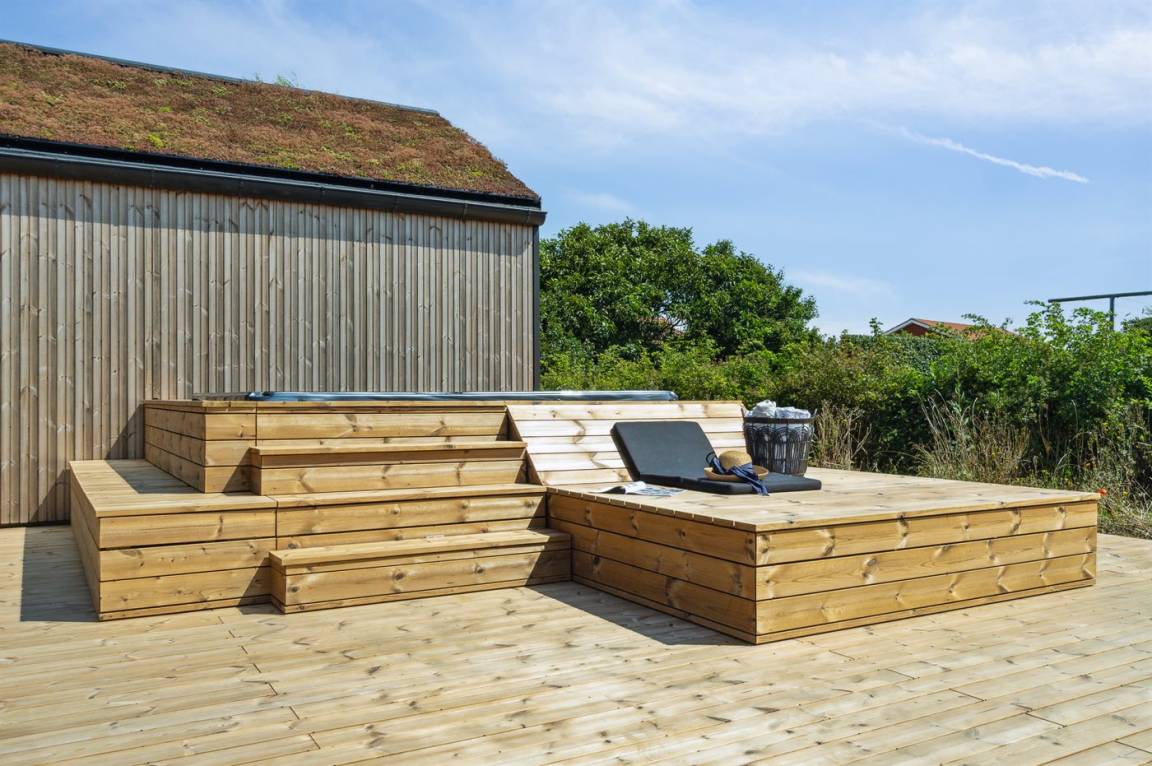 Schönes, neues Haus von 2023 mit absolut fantastischer Terrasse, auf der es unter anderem einen Outdoor-Whirlpool und eine Sauna gibt. Das Haus liegt nah am Wasser, wo man schöne Spaziergänge unternehmen und die Natur erleben kann.