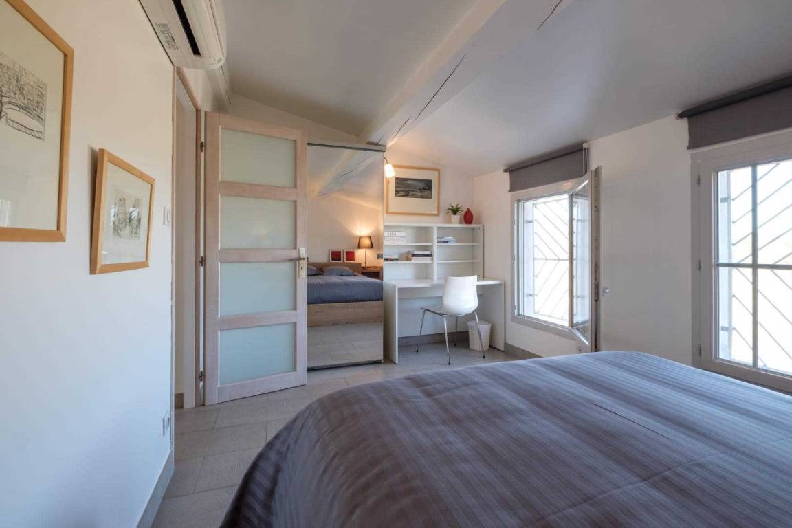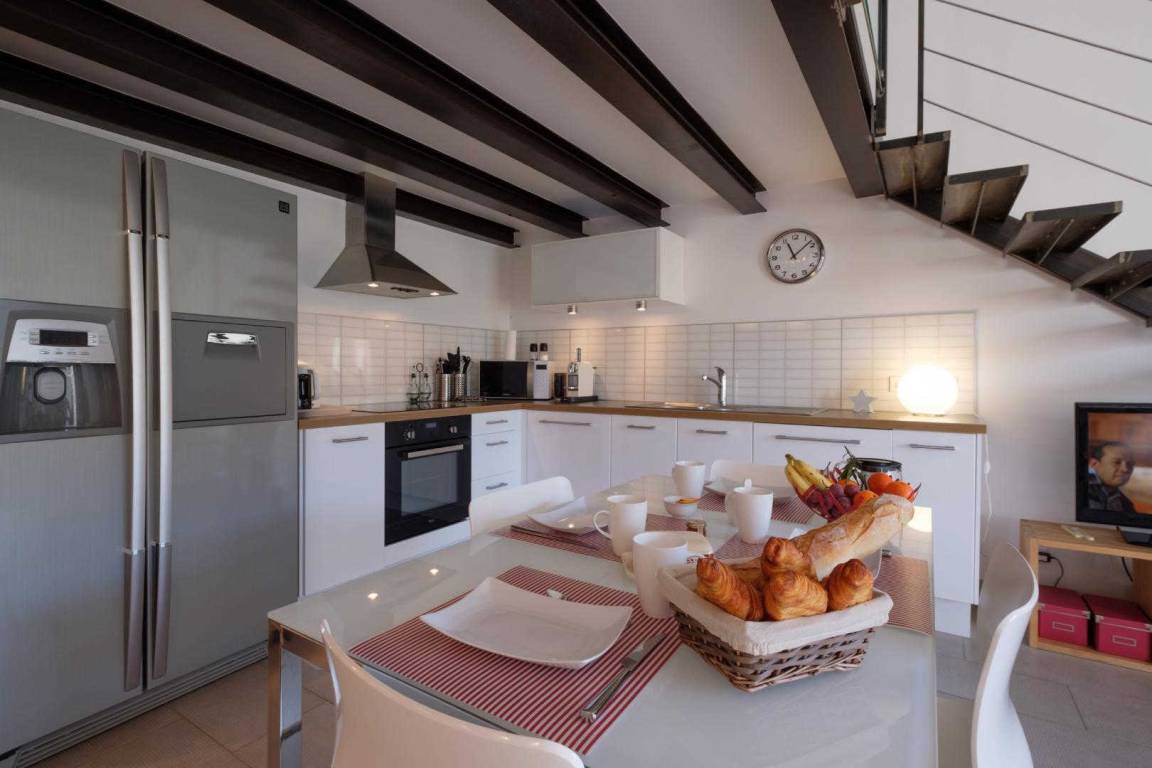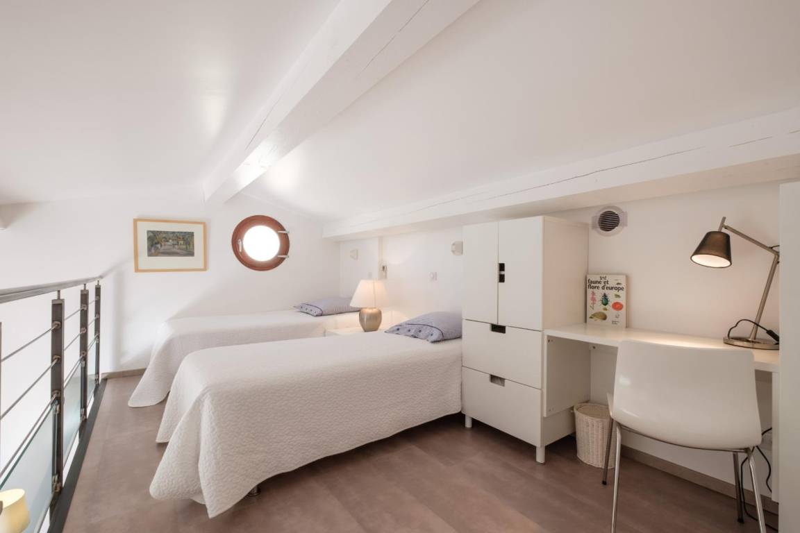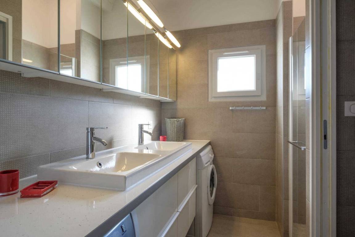 Erdgeschoss, Eingang und Garage. Im Obergeschoss, große Küche auf der Terrasse von 10 m ², Schlafcouch, Schlafzimmer mit Bett 160, Dusche - wc, Schlafzimmer Mezzanine mit 2 Betten 90 geben. Trockene Wäsche und Grill. Umschaltbare Klimaanlage, Wi-Fi und Tier akzeptiert bedingt.