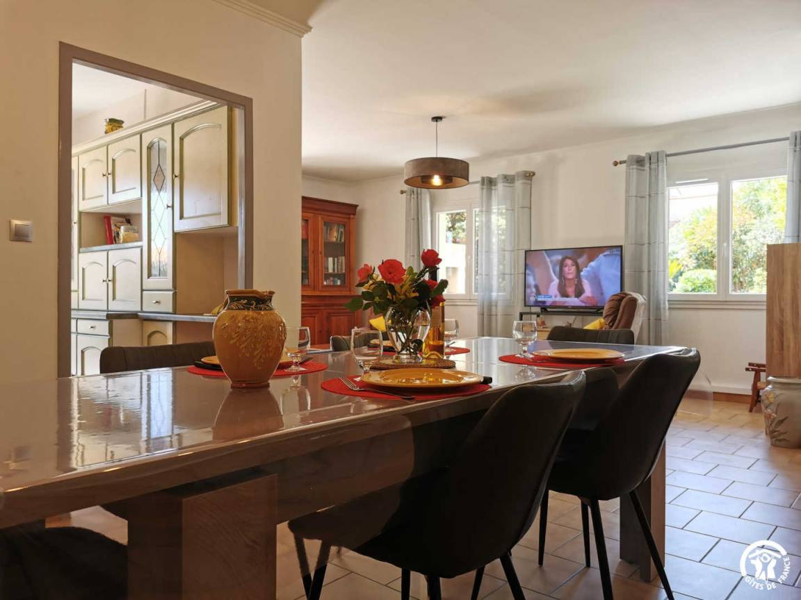 „Maison spacieuse et très bien équipée, entièrement de plain-pied, idéale pour des personnes à mobilité réduite. Quartier très calme et extérieur agréable. Très bon accueil et propriétaire sympathique et à l'écoute. Nous reviendrons avec grand plaisir.“