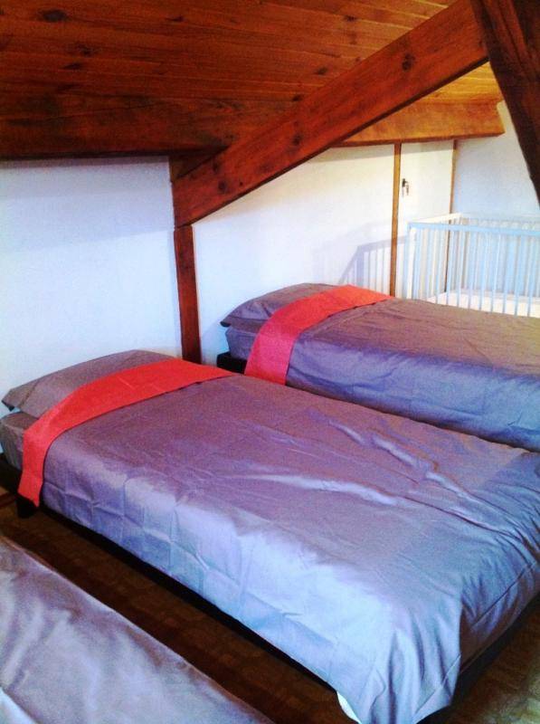 „Très bon accueil par une personne qui n'est pas le propriétaire mais sa représentante Vue magnifique mais salle de bain minuscule en placard ou presque qui semble un bricolage postérieur à la construction ce qui est étrange pour un chalet qui doit dater du début des années 60. Couchage dans le grenier transformé beaucoup trop chaud (je dors parfois seul devant utiliser un appareil respiratoire PPC). Prestation un peu chère pour ces raisons.“