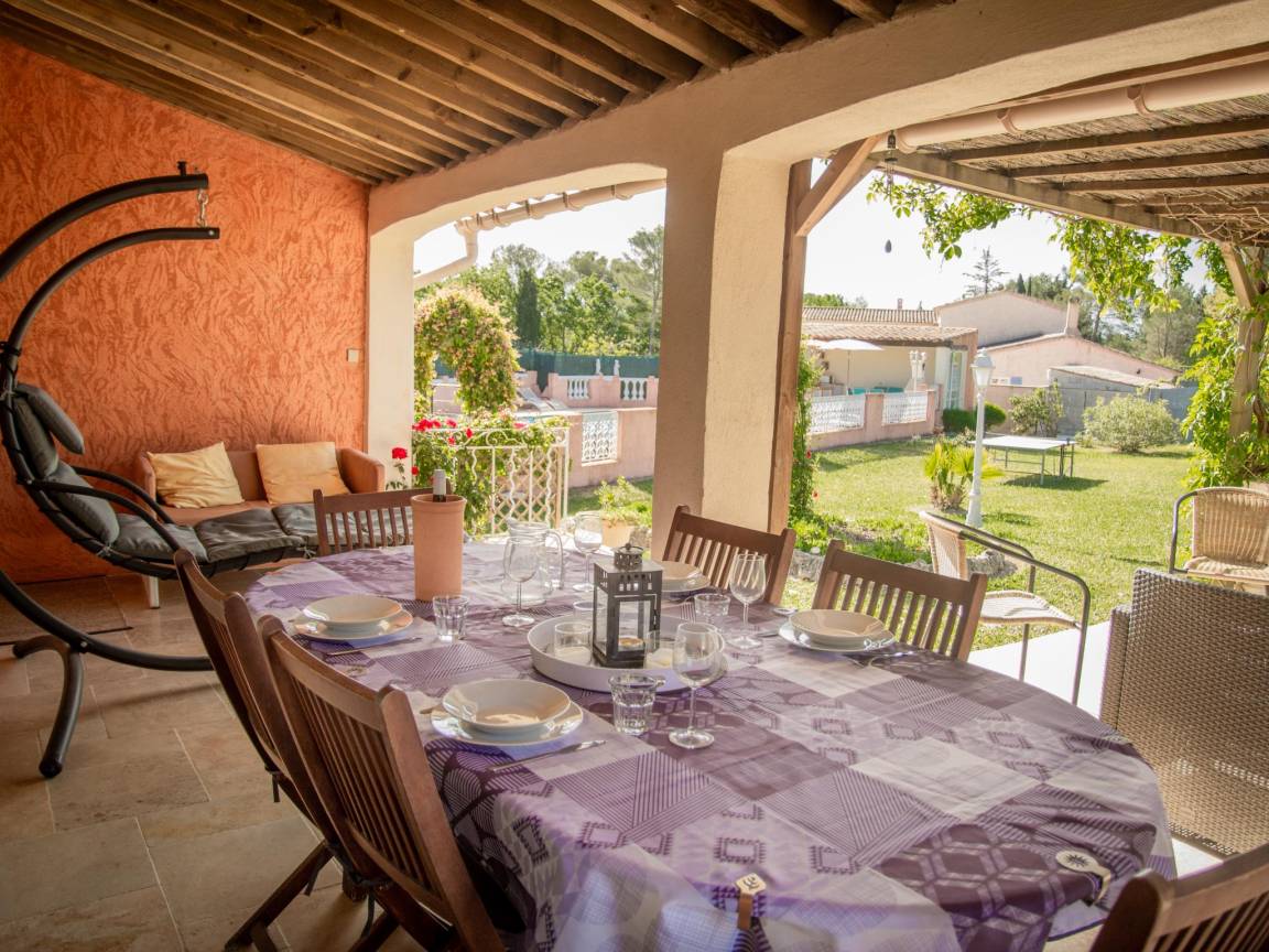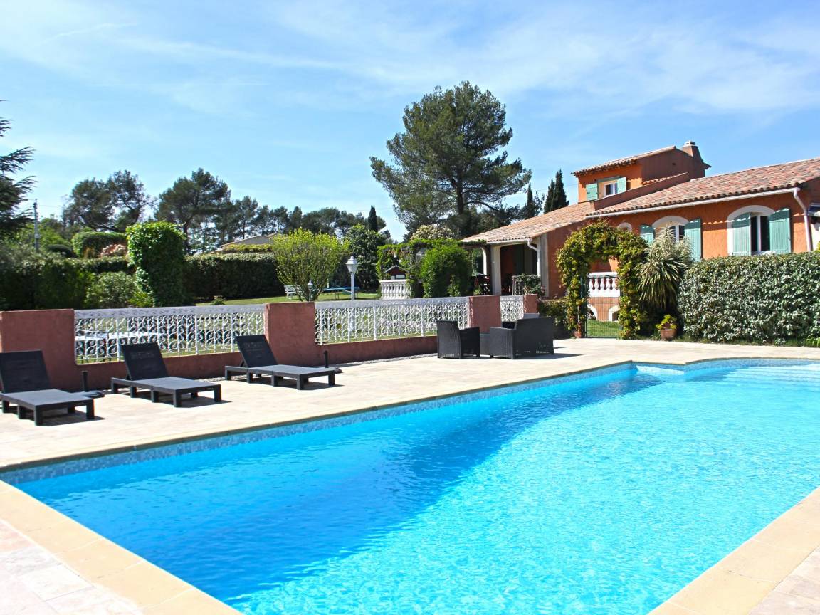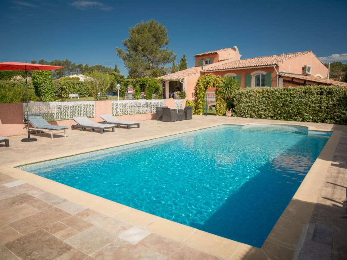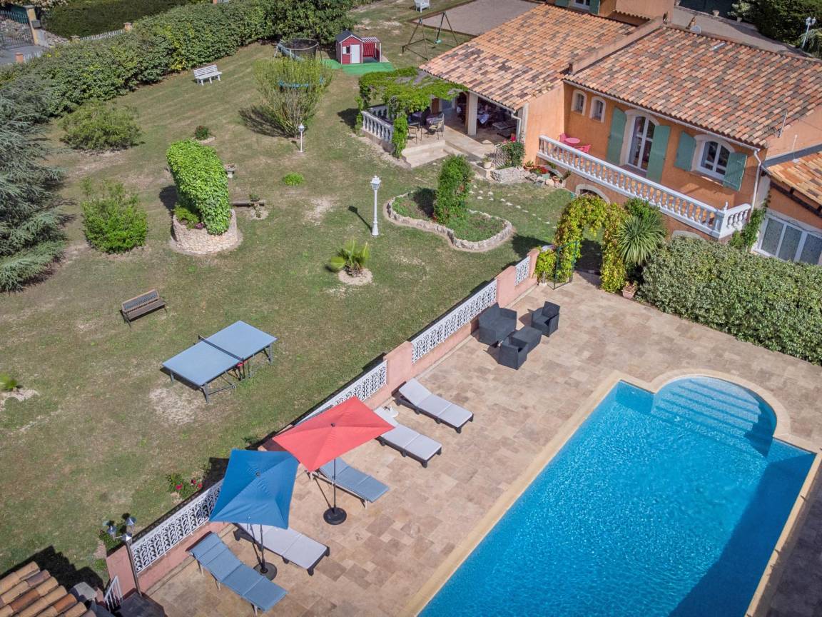 Hausbeschreibung : Entdecken Sie echtes Urlaubsleben in dieser großen Villa, ideal für Familien mit Kindern und Hunden. Freuen Sie sich auf einen umzäunten Garten mit Spielgeräten, 2 überdachte Terrassen, einen Bouleplatz und einen privaten Swimmingpool. Entspannen Sie sich auf den bequemen Liegen am überdachten Poolhaus mit Grill und genießen Sie einen sorgenfreien Schlaf, der durch die Klimaanlage ermöglicht wird. Eines der Schlafzimmer befindet sich im Hochparterre. Super gemütlich!