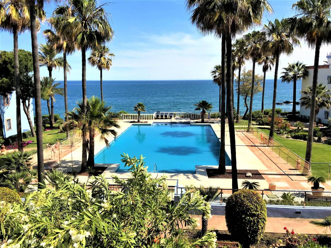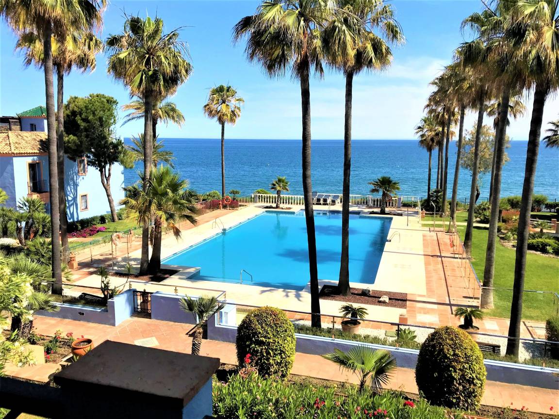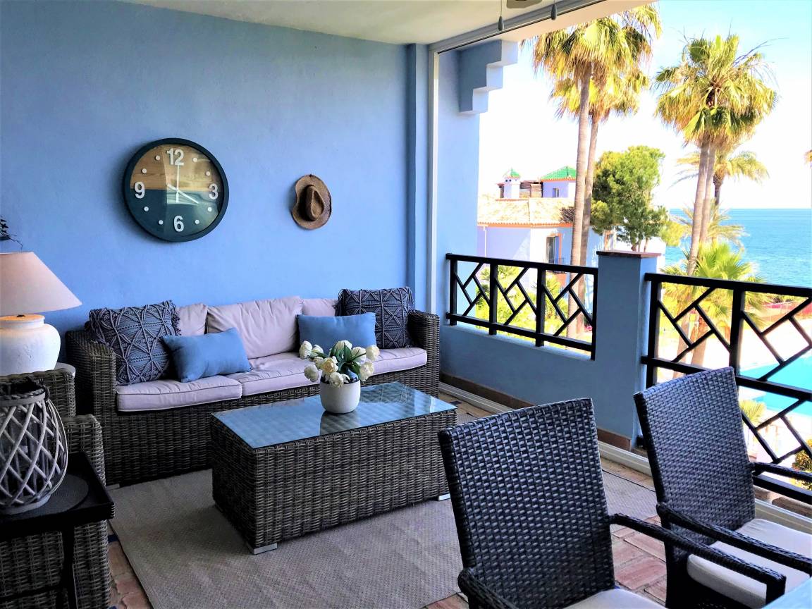 Luxuriöse 2-Schlafzimmer-Wohnung für bis zu 5 Personen direkt am Strand gelegen mit frontalem Pool- und Meerblick. Überdachte & verglaste Terrasse mit Lounge-Möbeln. WLAN & Tiefgarage!