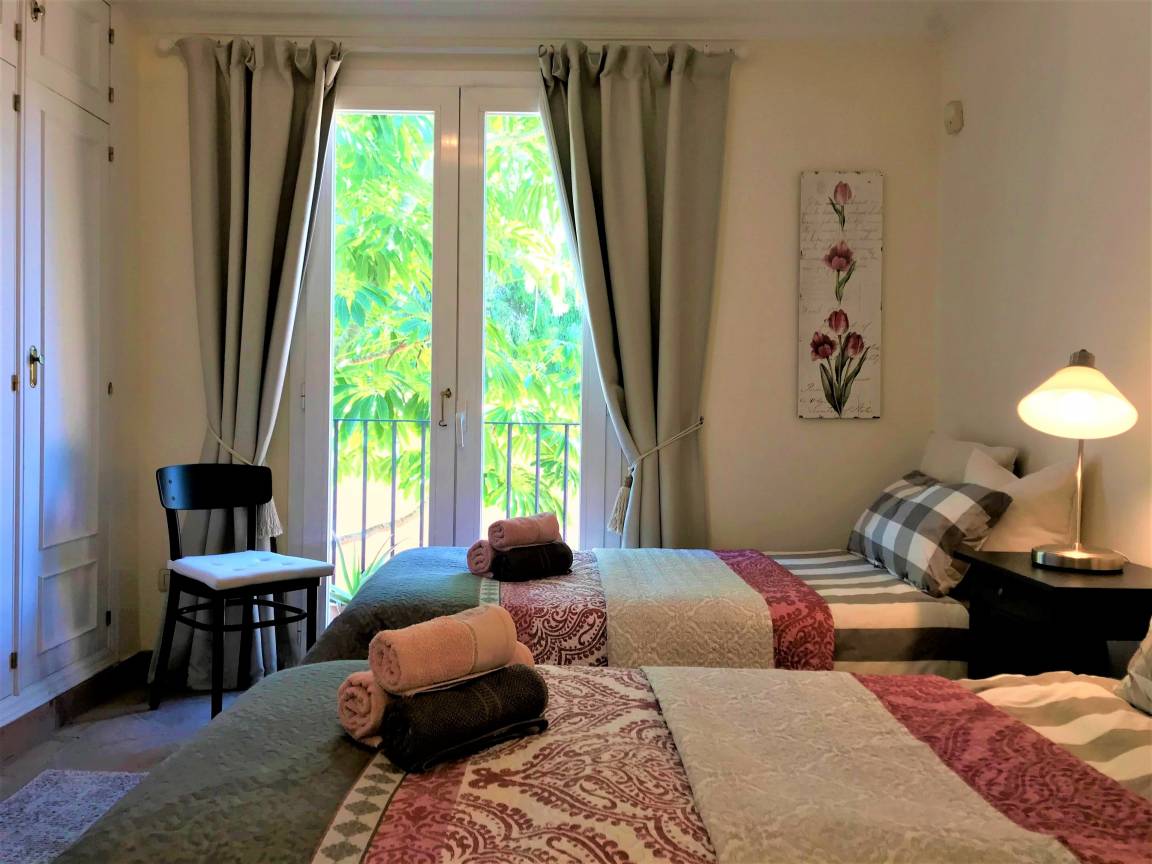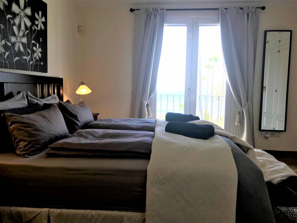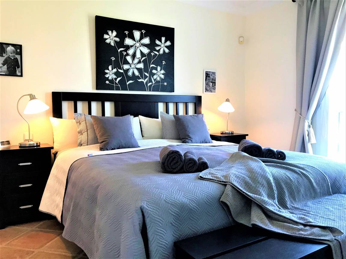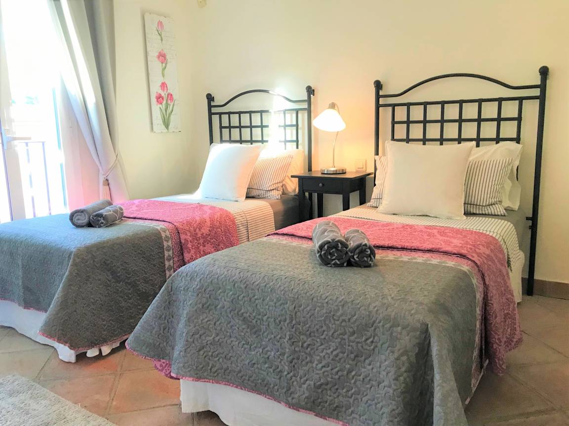 Beide Schlafzimmer sind sehr geräumig und verfügen beide über eingebaute Wandschränke und ein en-suite-Badezimmer mit Fussbodenheizung. Im Hauptschlafzimmer ist ein grosses Doppelbett mit 180X200cm. Hier geniessen Sie frontale Pool- und Meersicht. Im zweiten Schlafzimmer sind 2 Einzelbetten mit 90X190cm.