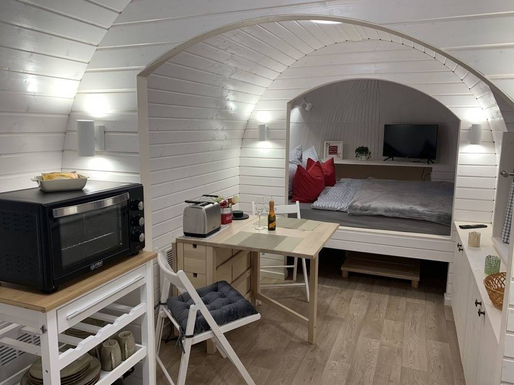 Das Igluhut 2 steht direkt an der Alpakawiese. Die Terasse ist nach Süd-West ausgerichtet, so das sie am Abend die untergehende Sonne beobachten können. Das Igluhut verfügt über einen großen Schlafbereich ( Liegefläche 200 * 160 cm ), einem Gästebett (200 * 70 cm), Küchenzeile, SAT-TV, Sitzecke, Bad mit Dusche/WC, möblierte Terrasse. Incl. Handtuch-Bettwäschepaket und Endreinigung. Der Wellnessbereich kann im Buchungsvorgang dazu gebucht werden. Für mitgereiste Kinder besteht auch die Möglichkeit, ein Zelt direkt am Igluhut zu buchen.