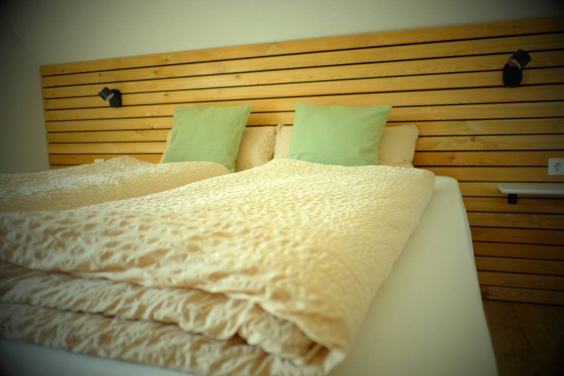 Gemütliches Kingsize Bett (1,80 x 2,00 m) mit bequemer Matratze und hochwertigen 1,55 x 2,10 m Bettdecken.