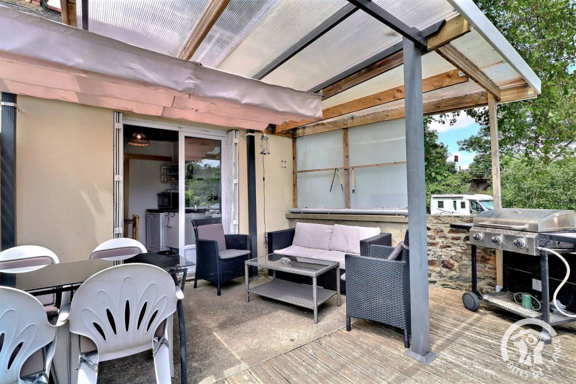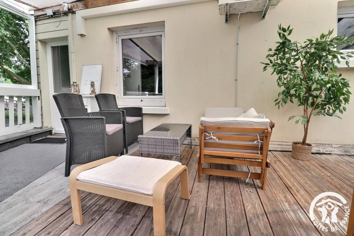 Im ersten Stock des Hauses des Eigentümers mit privatem Zugang nach draußen: eine Küche, die auf eine Terrasse mit Außenlounge und Grill führt, ein Schlafzimmer mit einem 140 x 190-Bett und einem Wohnzimmer (BZ-Sofa), ein Schlafzimmer mit zwei 90 x 190-Betten und ein Badezimmer mit TOILETTE. Parken auf dem kostenlosen öffentlichen Parkplatz in unmittelbarer Nähe.