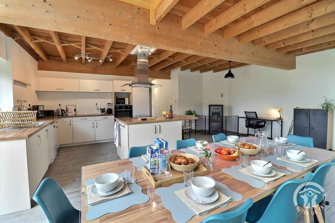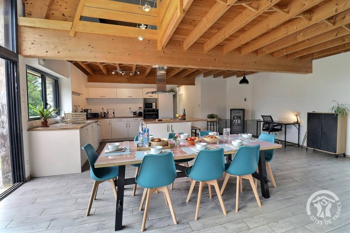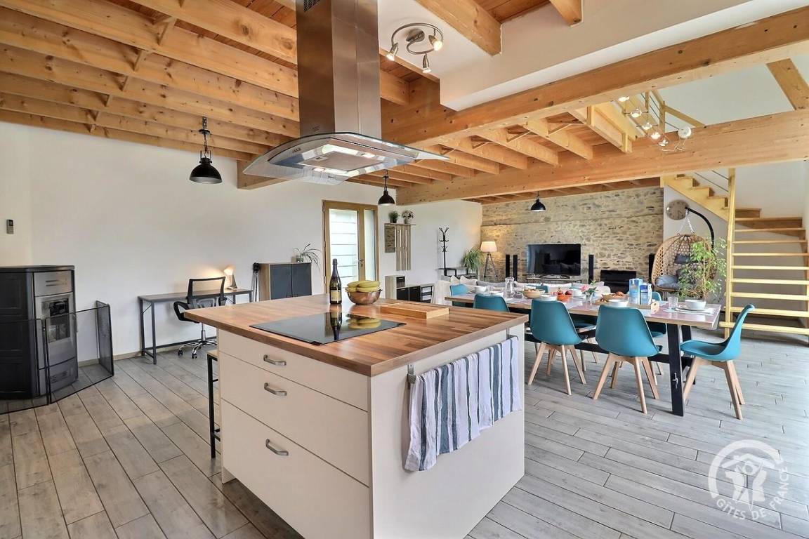 „Gîte spacieux et agréable ! Parfaitement équipé à tous les niveaux, et pour absolument tous les âges (que ce soit niveau cuisine, loisirs, équipement bébé / bambins…) Lumineux même par mauvais temps. La literie est confortable. Le poêle a granulés chauffe efficacement ce grand espace. Vraiment, un super séjour en famille ! Une pépite à retenir.“