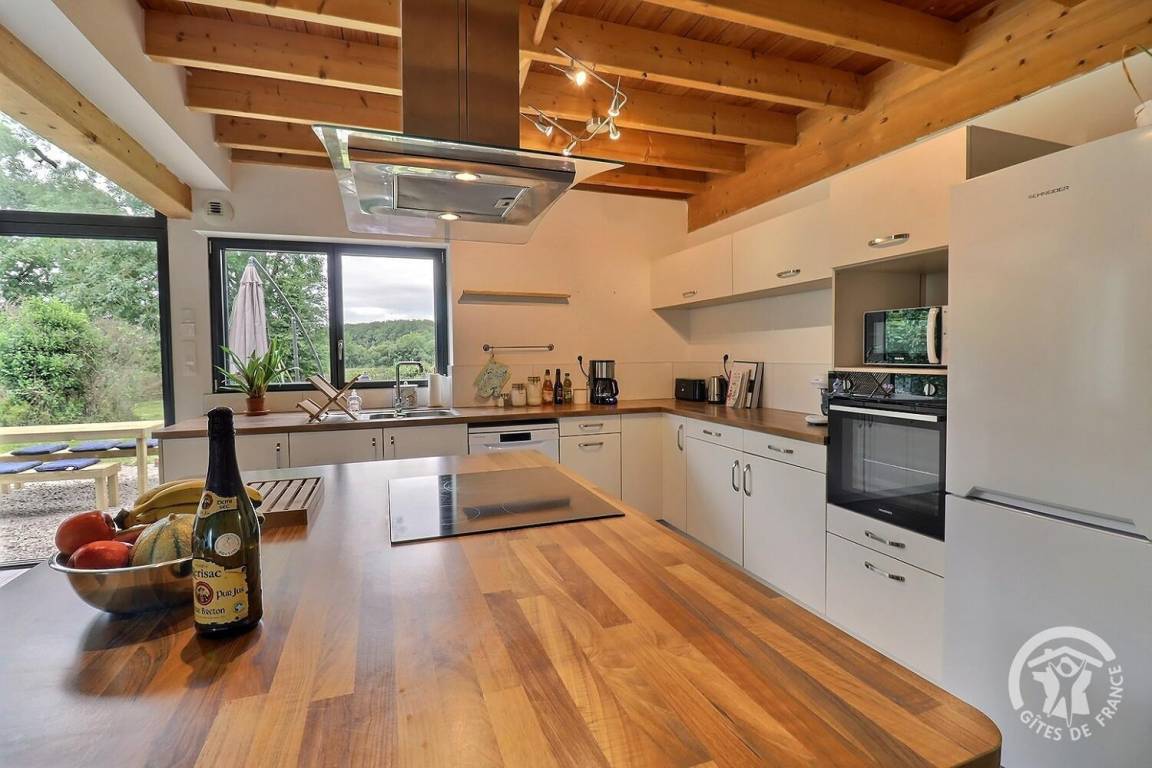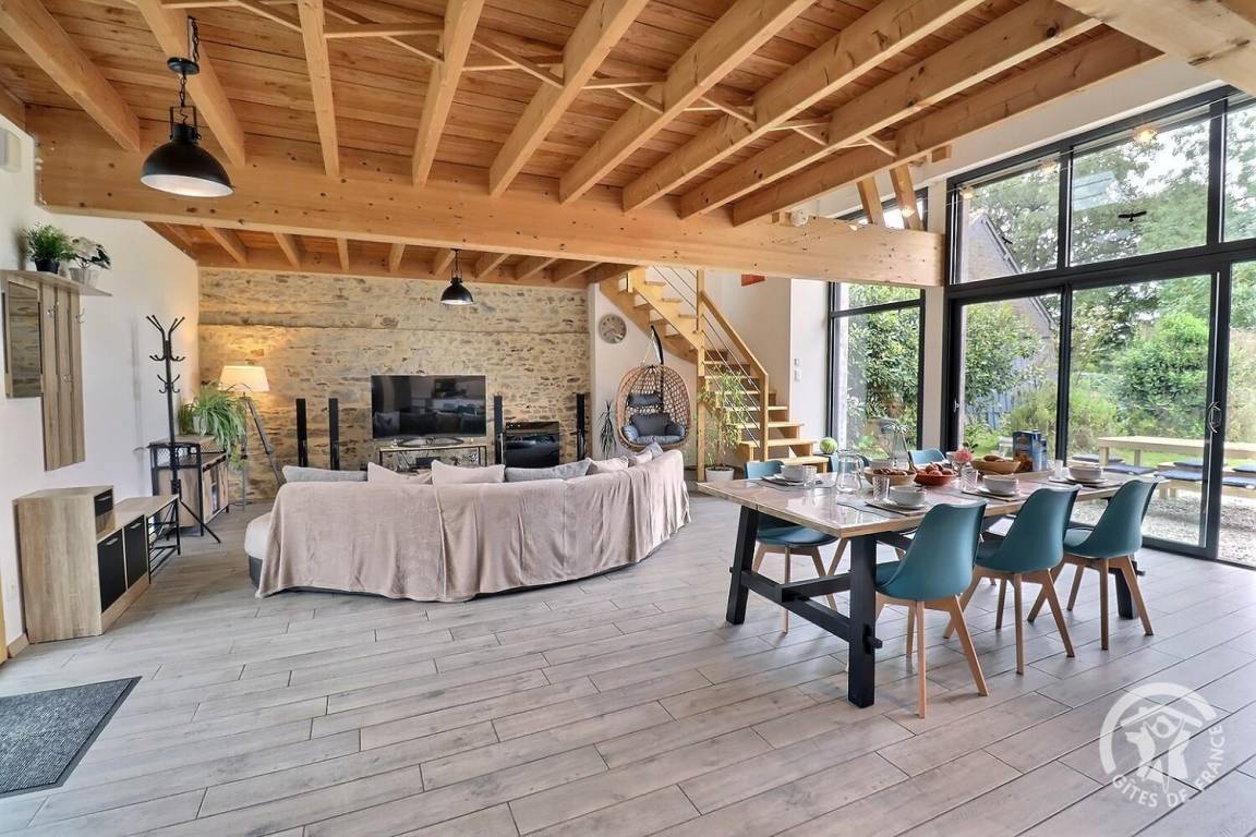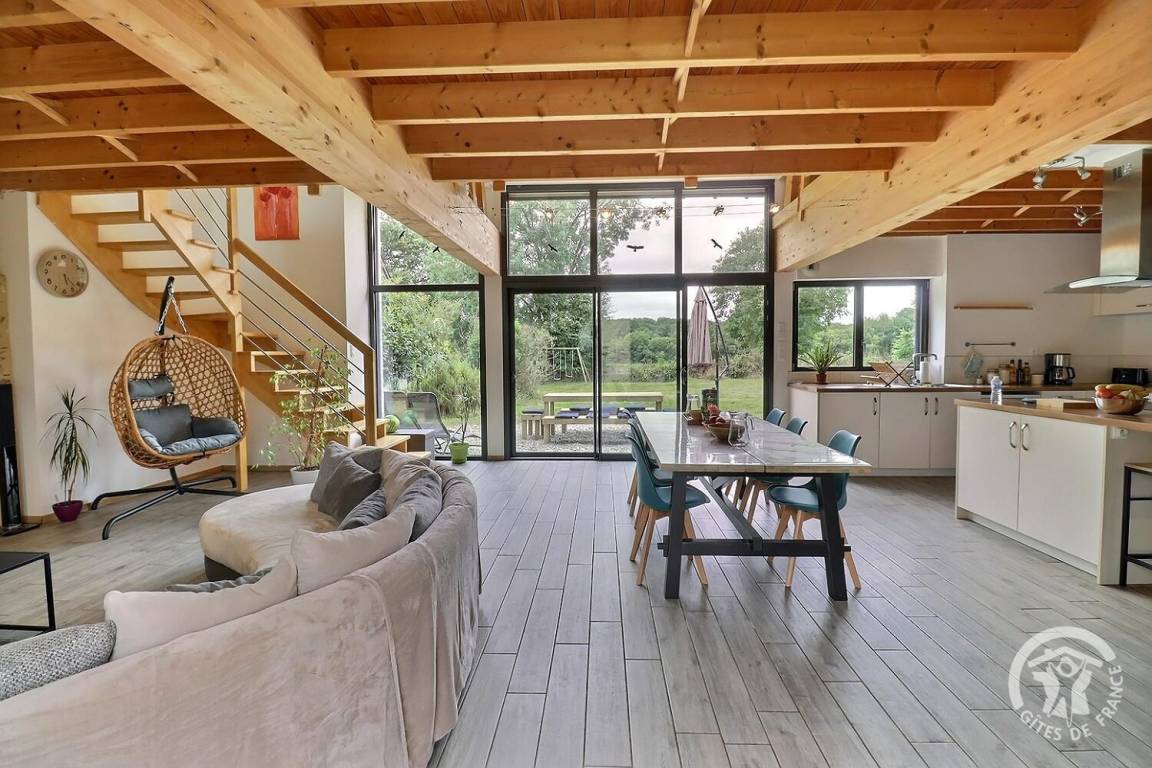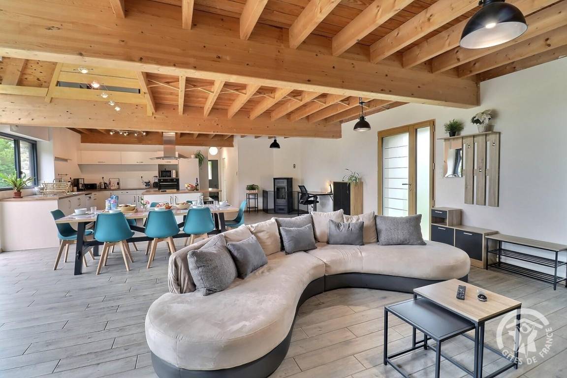 „Gîte spacieux et agréable ! Parfaitement équipé à tous les niveaux, et pour absolument tous les âges (que ce soit niveau cuisine, loisirs, équipement bébé / bambins…) Lumineux même par mauvais temps. La literie est confortable. Le poêle a granulés chauffe efficacement ce grand espace. Vraiment, un super séjour en famille ! Une pépite à retenir.“