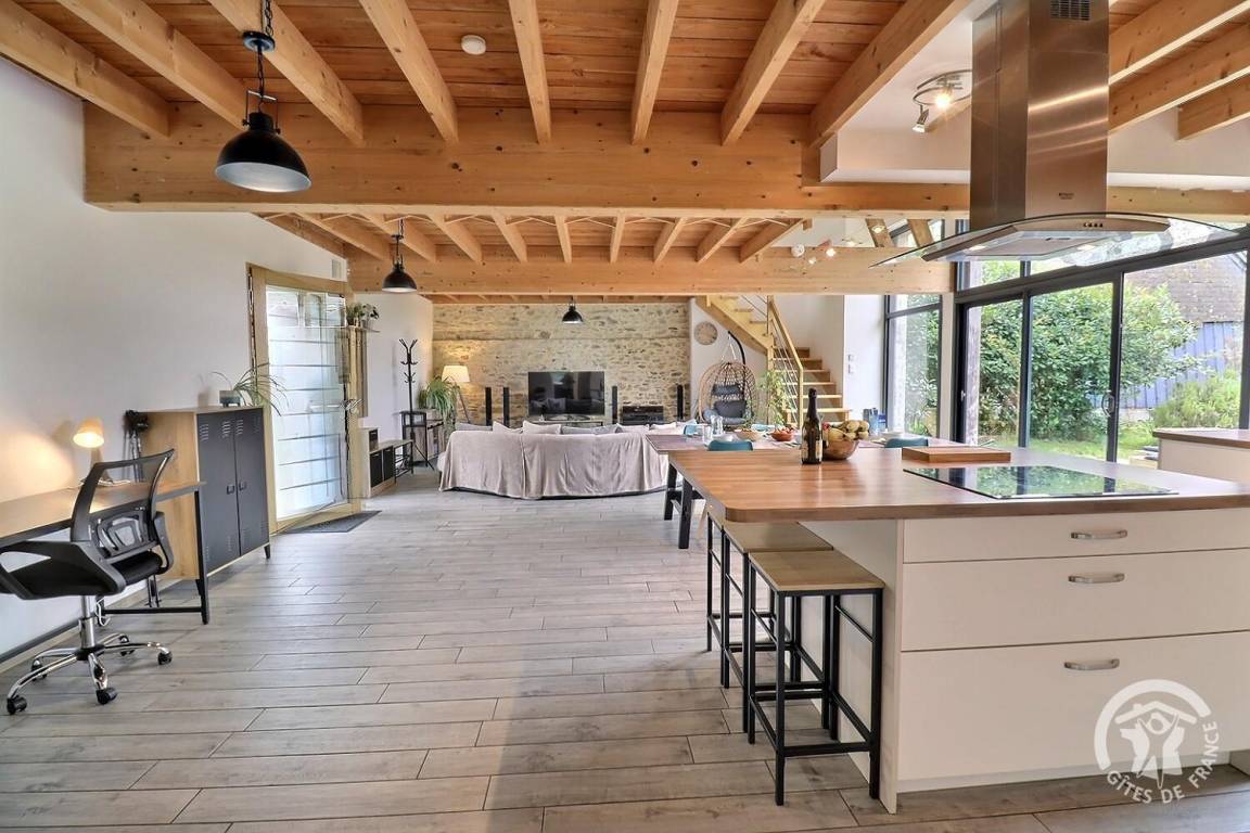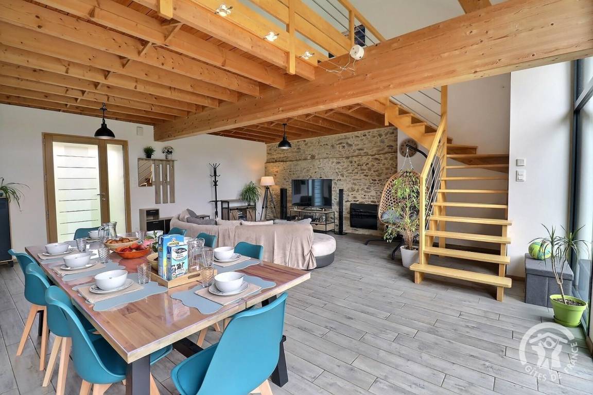 „Nous avons découvert ce gîte pour un regroupement familial, l'organisation pour les clés très facile, le gîte très grand et magnifiquement rénové, archi équipé au niveau de la cuisine, beaucoup les jeux mis a disposition, pour les petits les ados (jeux vidéo) et les adultes (billard a l'étage) ! Chauffage parfait avc le poêle a granulés. Un grand merci a Mr Blin, nous reviendrons volontiers !“