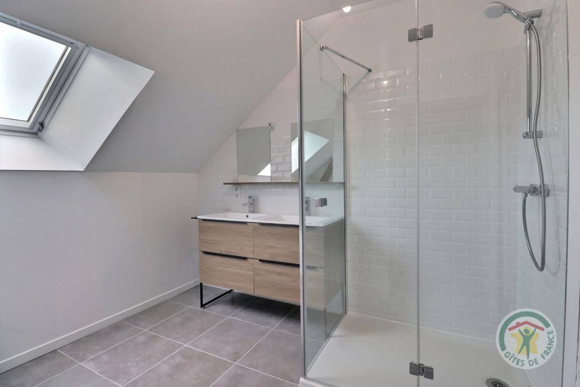 Im Erdgeschoss, zugänglich für Personen mit eingeschränkter Mobilität: ein Wohnzimmer mit Küche und Wohnzimmer, ein Schlafzimmer mit einem 160 x 200 cm großen Bett, ein angepasstes Duschbad und ein separates WC. Obergeschoss: ein Treppenabsatz mit Wohnzimmer, ein Schlafzimmer mit einem 160x200-Bett, zwei Schlafzimmer mit jeweils zwei 80x200-Betten, die auf 160x200 eingestellt werden können, ein Badezimmer mit Doppelwaschbecken, Badewanne und Dusche und eine separate Toilette. Parkplatz auf dem Grundstück. Für Ihren Komfort: Bezogene Betten bei Ankunft, Handtücher werden gestellt.