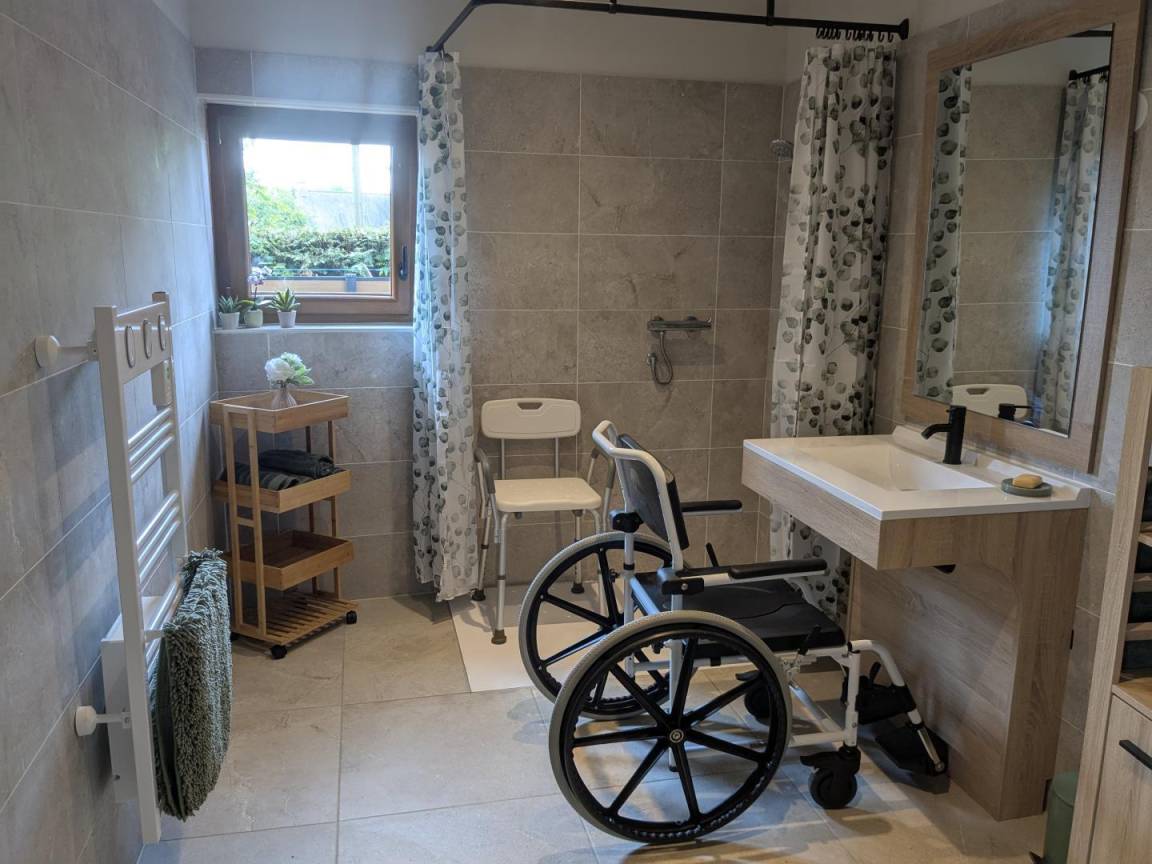 „Mon papa et moi avons passé un super séjour. Nous nous sommes ressourcé au contact de la nature et des animaux. Étant en fauteuil je peux vous dire que ce gîte est très bien adapté (les photos ne sont pas toutes actualisées mais il y bien des barres d'appui aux toilettes et à la douche et Véronique met à notre disposition tout le matériel nécessaire. Pour moi ce fut notamment une chaise de douche adaptée.) Merci à Véronique et Serge pour leur accueil et leur bienveillance. A bientôt, nous reviendrons c'est certain et encore merci. Alexandra et Eric“
