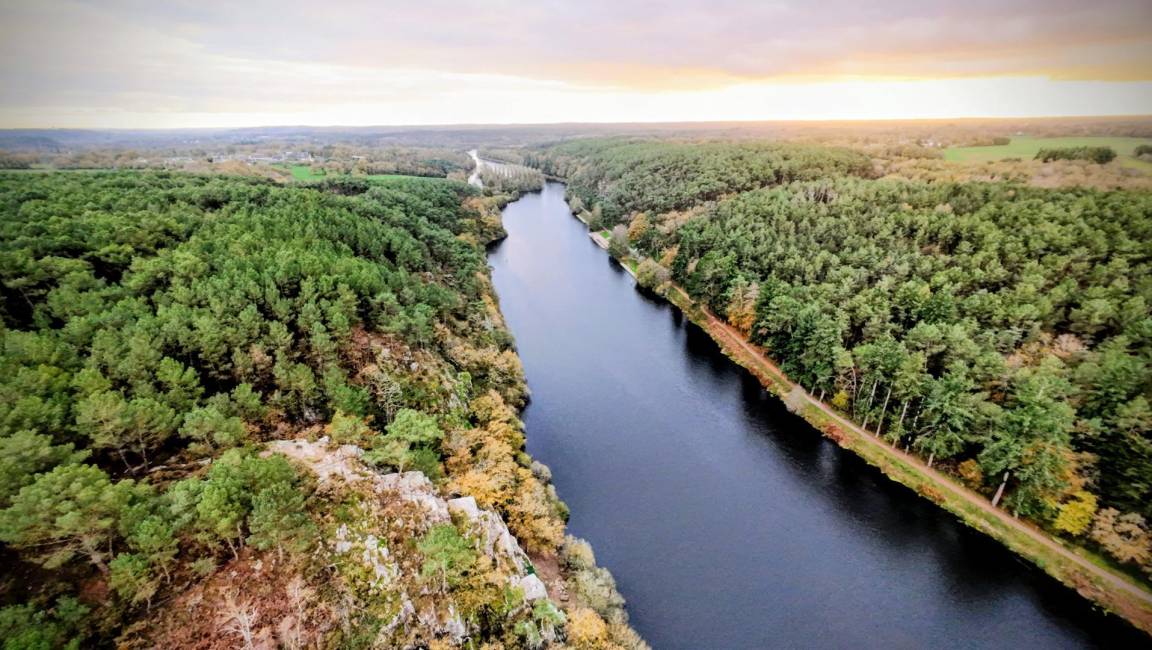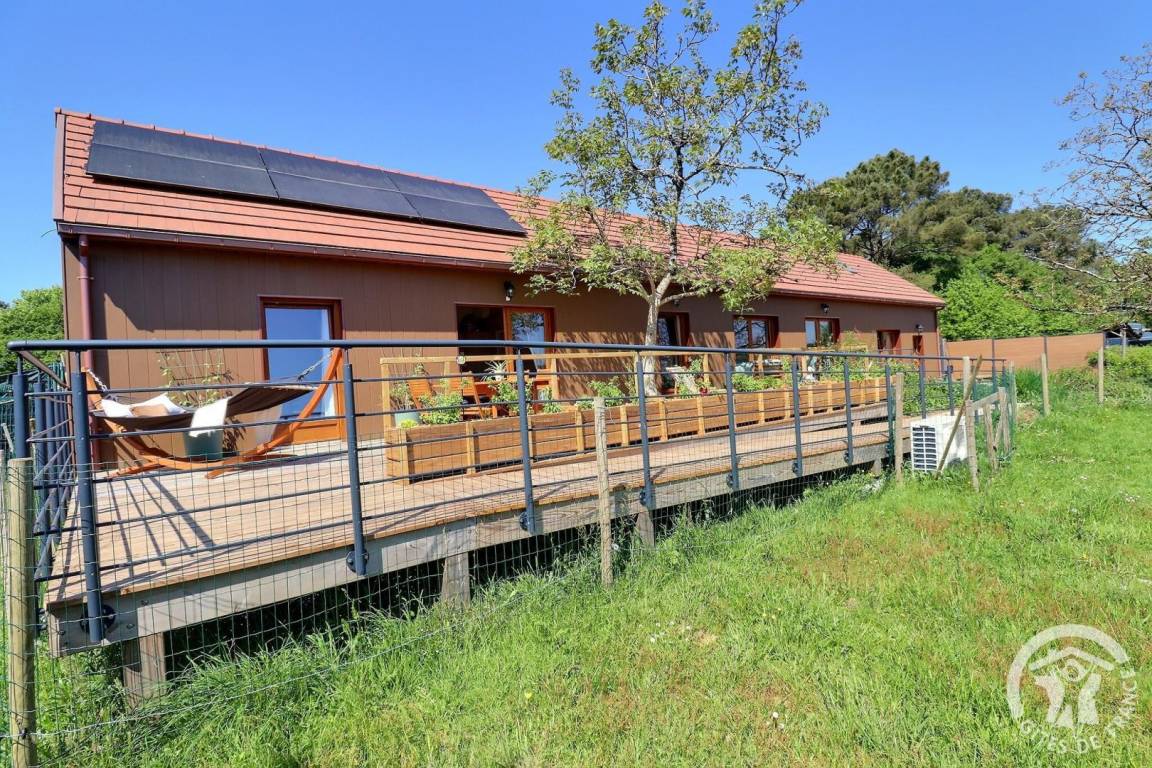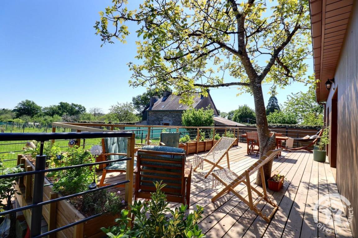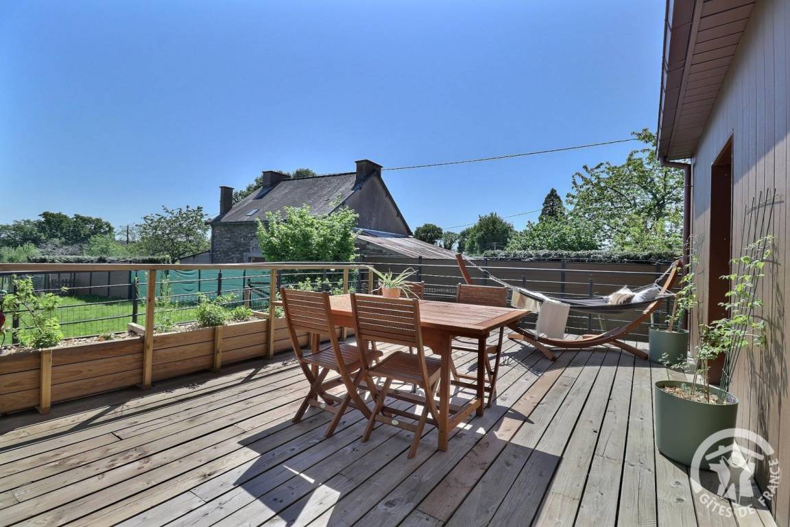 Das Haus öffnet sich zu einer großen Holzterrasse und lädt zum Entspannen, Durchatmen und Genießen ein. Ob für einen Wochenendausflug oder einen längeren Aufenthalt – es ist der ideale Ort, um wieder zu sich selbst und zur Natur zu finden. Dank der idealen Lage zum Wandern und Radfahren und dem direkten Zugang zum Nantes-Brest-Kanal ist das Ferienhaus nur 3 km von der Île aux Pies entfernt, einem perfekten Ort zum Klettern, Angeln und Kanufahren auf dem Fluss Oust.