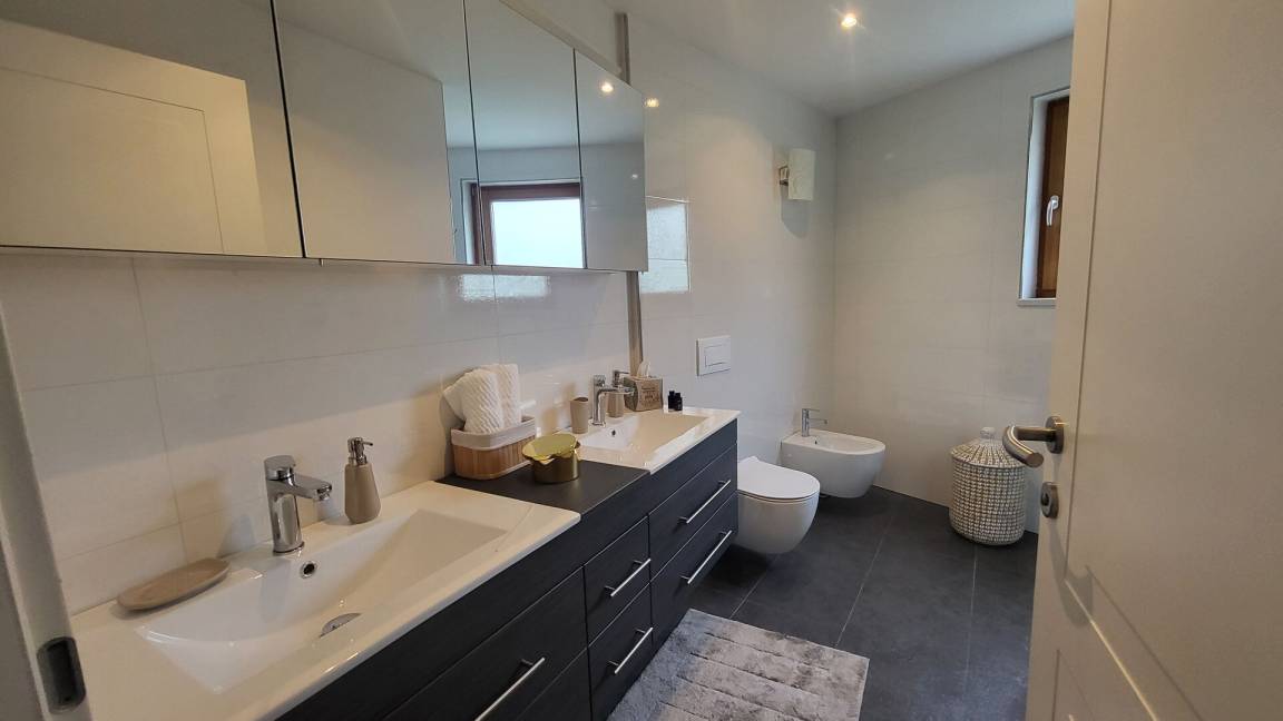 Badezimmer 2: Waschbecken, WC, Bidet, Dusche.