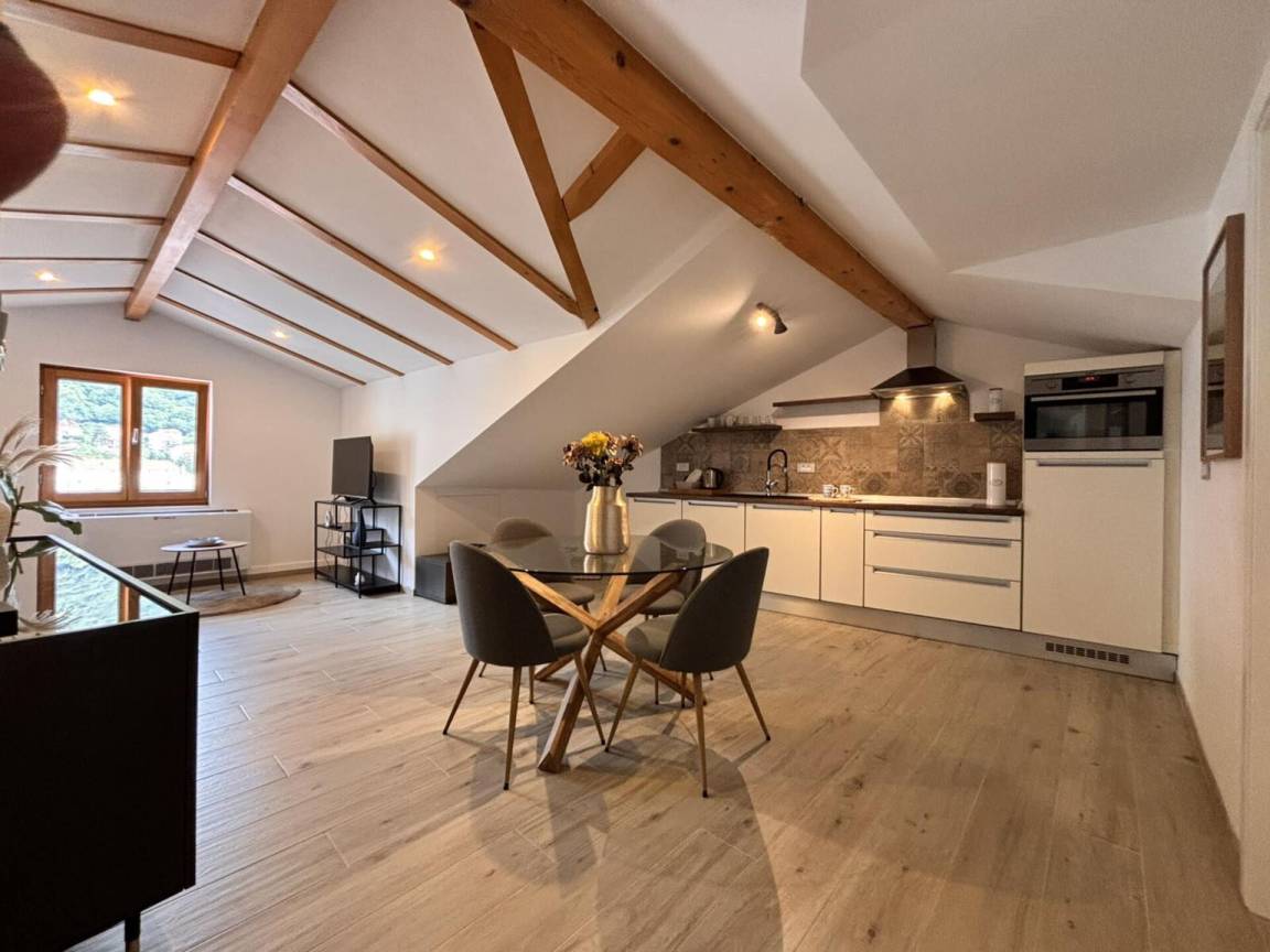 Mit Wohnküche, 2 Schlafzimmer, Badezimmer.