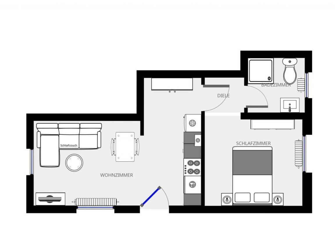 38 m² Ferienwohnung ∙ 1 Schlafzimmer ∙ 2 Gäste