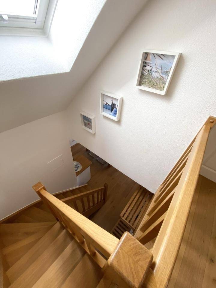 Die Maisonettwohnung trennt den Wohnungsbereich, die Küche so wie das Gäste WC perfekt von den oben gelegenen Schlafbereichen und dem Badezimmer.