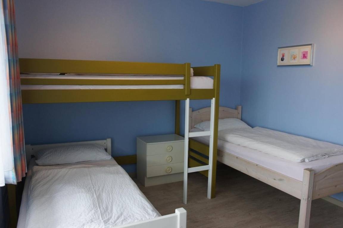 1 Wohnzimmer, 1 Schlafzimmer, 1 Kinderzimmer (3 Betten Stockbett/Einzelbett) mit Waschgel., Bad, WC getrennt, sep. Küche, Flur und Balkon nach Westen und Norden