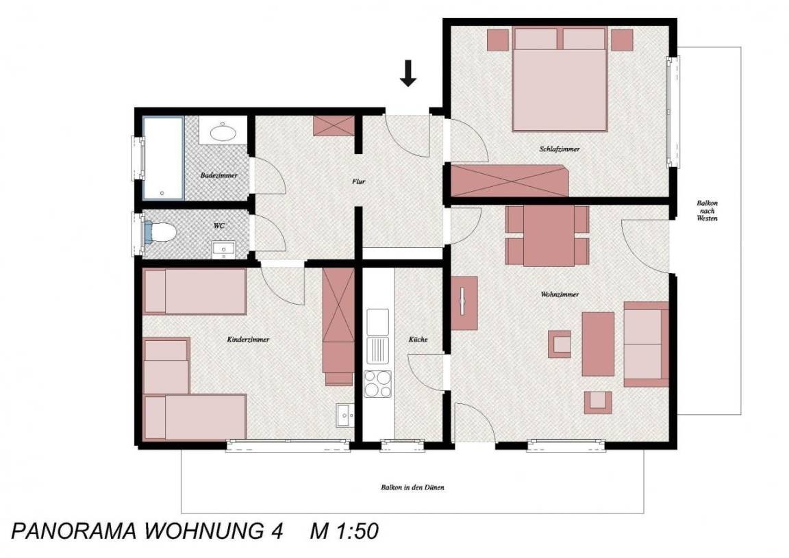 Das Ferienhaus Panorama liegt zentral am Rand der Dünen. Die Wohnungen sind großzügig geschnitten, mit 2 sep. Schlafzimmern, herrlichem Balkon zur Watt- oder Meerseite. Ein großteil der Wohnungen verfügt über Spülmaschine und Mikrowelle. Der Strand, das Schwimmbad, Einkaufsmöglichkeiten und Restaurants sind nur wenige Schritte entfernt.