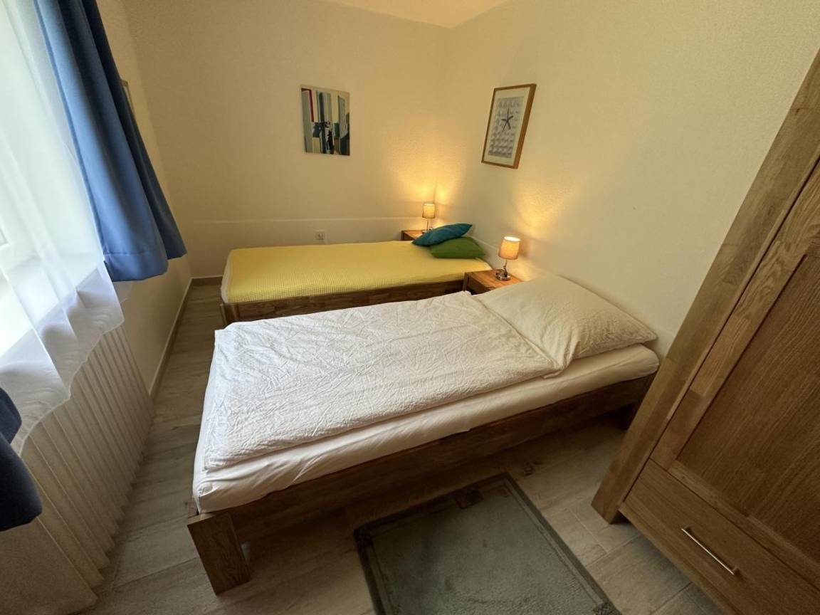 48 m² große Ferienwohnung mit 2 Schlafräumen für 2-4 Personen, Wohnraum mit Küchenzeile, Dusche/WC, eigener Hauseingang