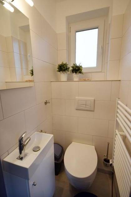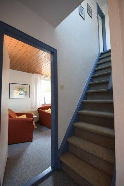Bitte beachten Sie die steile Treppe ins Obergeschoss.