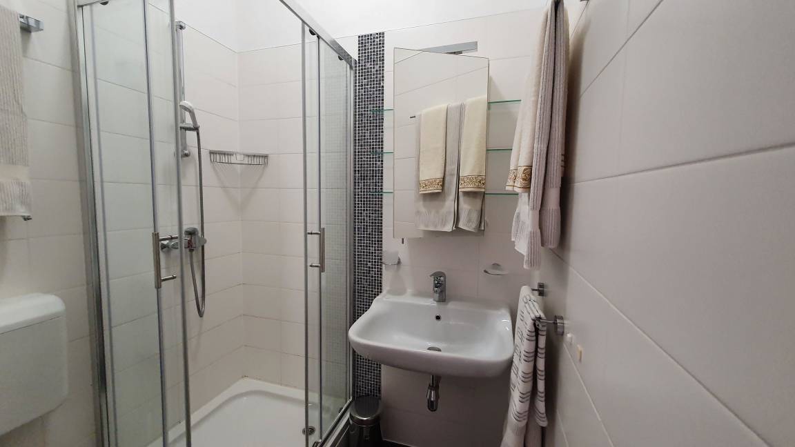 Gemütliche Zweizimmerwohnung, ideal für 3 Personen. Sie verfügt über ein Doppelbett, ein Einzelbett und ein bequemes Schlafsofa auf 48 m².