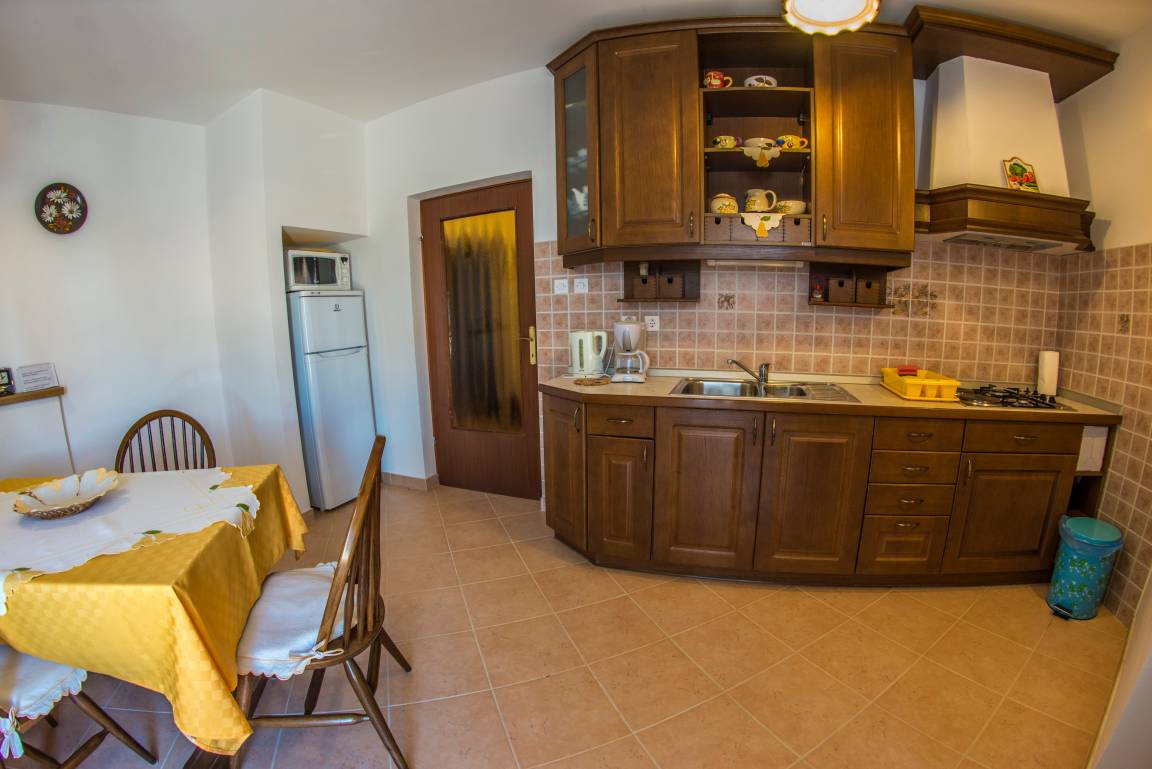 Ferienwohnung A1 befindet sich in der Villa MaVeRo 150 m vom Meer entfernt. Vom Balkon der Ferienwohnung haben Sie einen Blick auf das Meer und den Strand in Vinkuran Bucht. Die Ferienwohnung ist 79 m² und befindet sich auf der ersten Etage. Die Ferienwohnung hat Klimaanlage, Heizungsradiator, WLAN-Internetzugang (im Preis eingerechnet). Die Ferienwohnung hat einen geräumigen Flur der zur Küche, Badezimmer und zwei Schlafzimmer führt. Die Küche verfügt über einen Arbeitsbereich komplett ausgestattet: elektrische Herdplatte, zwei Kochgas, Mikrowelle, Kühl- und Gefrierschrank, Toaster, Kaffeebrühen für deutsche Touristen, express Kaffee für italienische Touristen. Wohnbereich der Küche ist mit 4 Stühlen und einem großen Esstisch ausgestattet. In diesem Teil finden Sie das TV mit SAT auf der Wand. Von der Küche können Sie zu der halbrunden und bedeckte Terrasse herausgehen, wo Tisch für vier Personen ist, wobei Sie im Freien genießen können. Von der Terrasse haben Sie einen Blick auf den Strand, der von Villa 150 m entfernt ist.